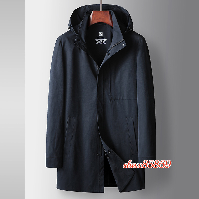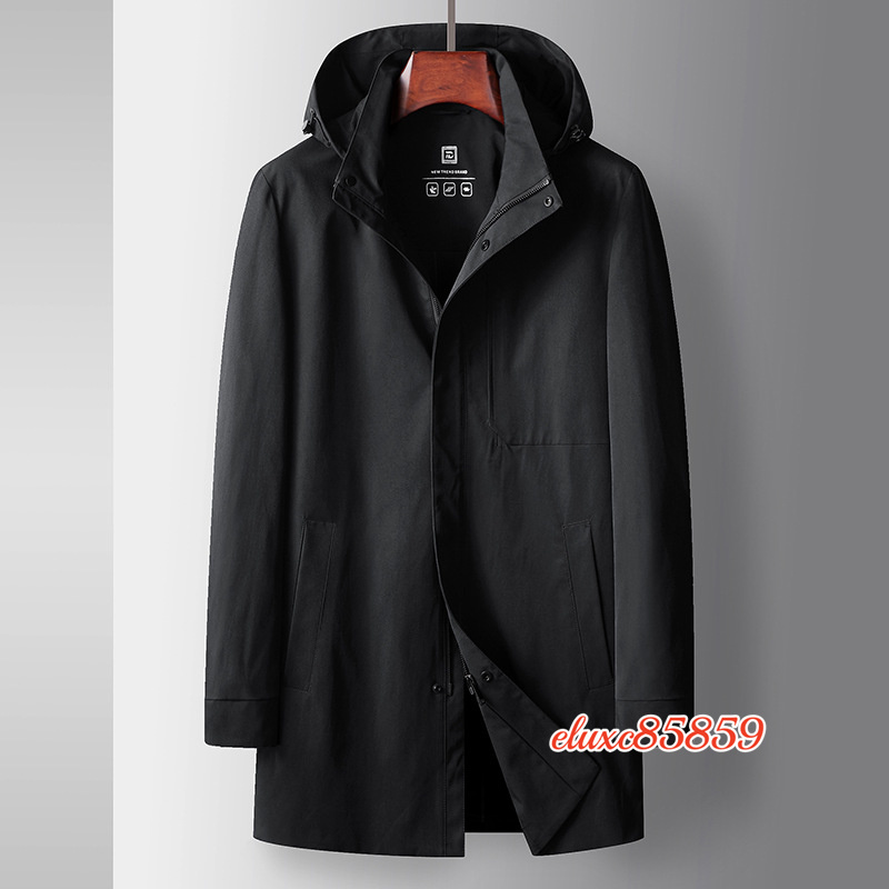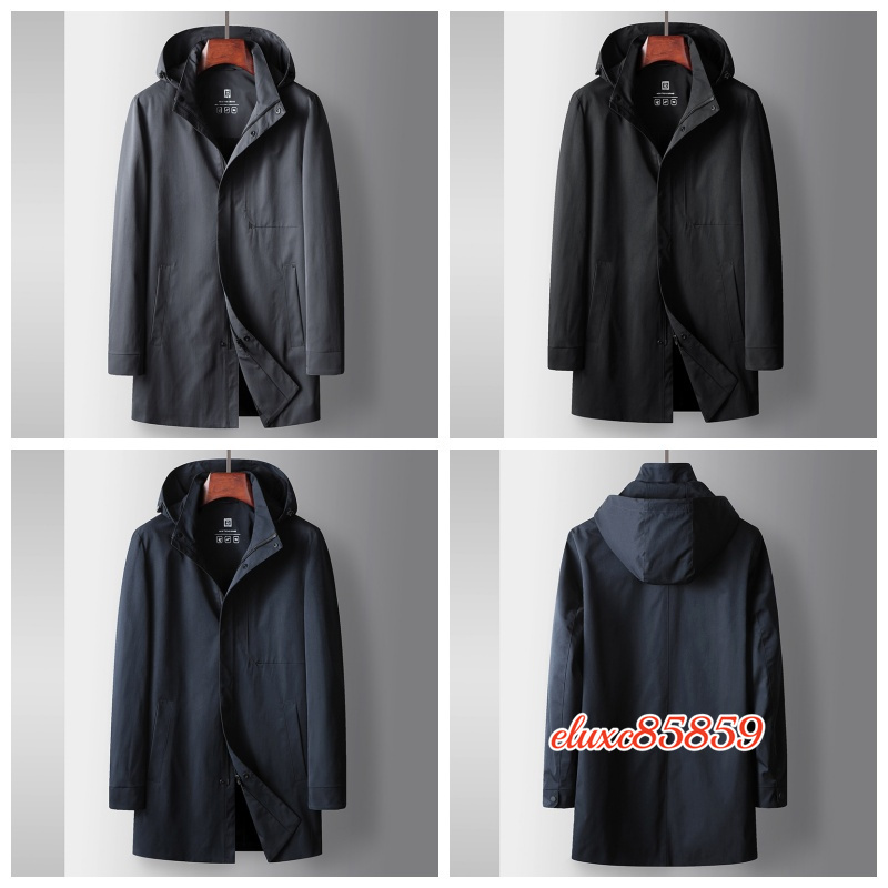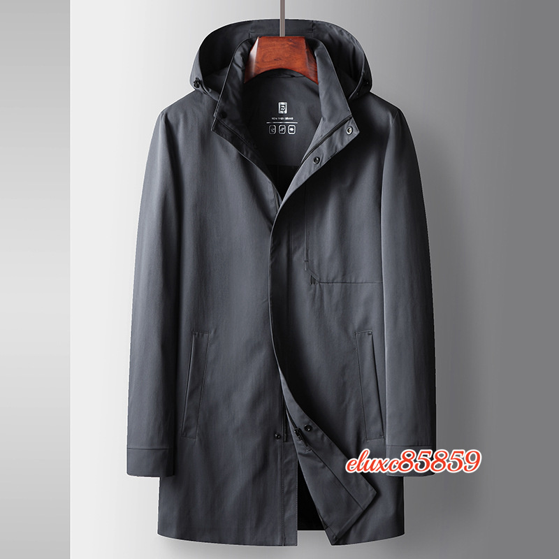 初売り メンズ ロングコート スタンドカラー トレンチコート ビジネス 上品 秋冬コート 取り外し可能フード アウター サイズ選択可L グレー