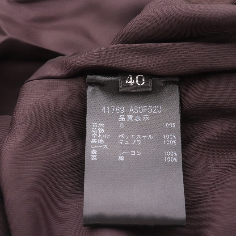 フォクシー スカート ボトムス キルティング ロゴプレート ひざ丈 レディース 40 (M相当) チョコレート ブラウン ハンガー付き 付属品:写真のものが全てです ●表記サイズ:40 ○実寸 ウエスト周り(平置き幅×2):71cm 着丈:68.7cm ヒップ:132cm ⇒ アパレル商品のカラー基準・採寸方法・海外サイズ換算表 (参考)トルソー(マネキン)は男女ともMサイズです。 素材:表地:毛100% 詰物 中わた:ポリエステル100% 裏地:キュプラ100% レース 表:レーヨン100% レース 裏:綿100% | ||||||||||||||||