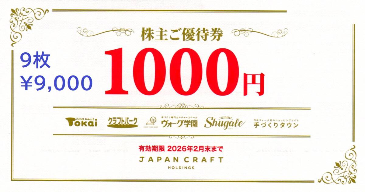 ☆最新 即決 防水梱包 ジャパンクラフトホールディンクス株主優待券 9000円分 有効期限2026年2月末☆7135