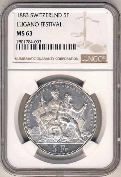 スイス 近代射撃祭 ルガーノ 5 フラン銀貨