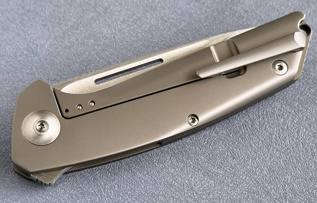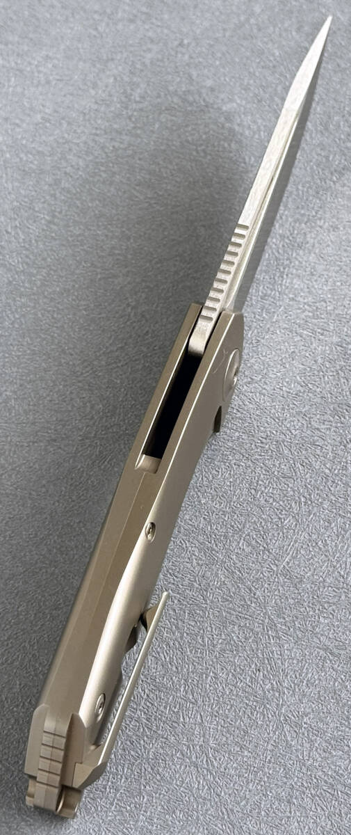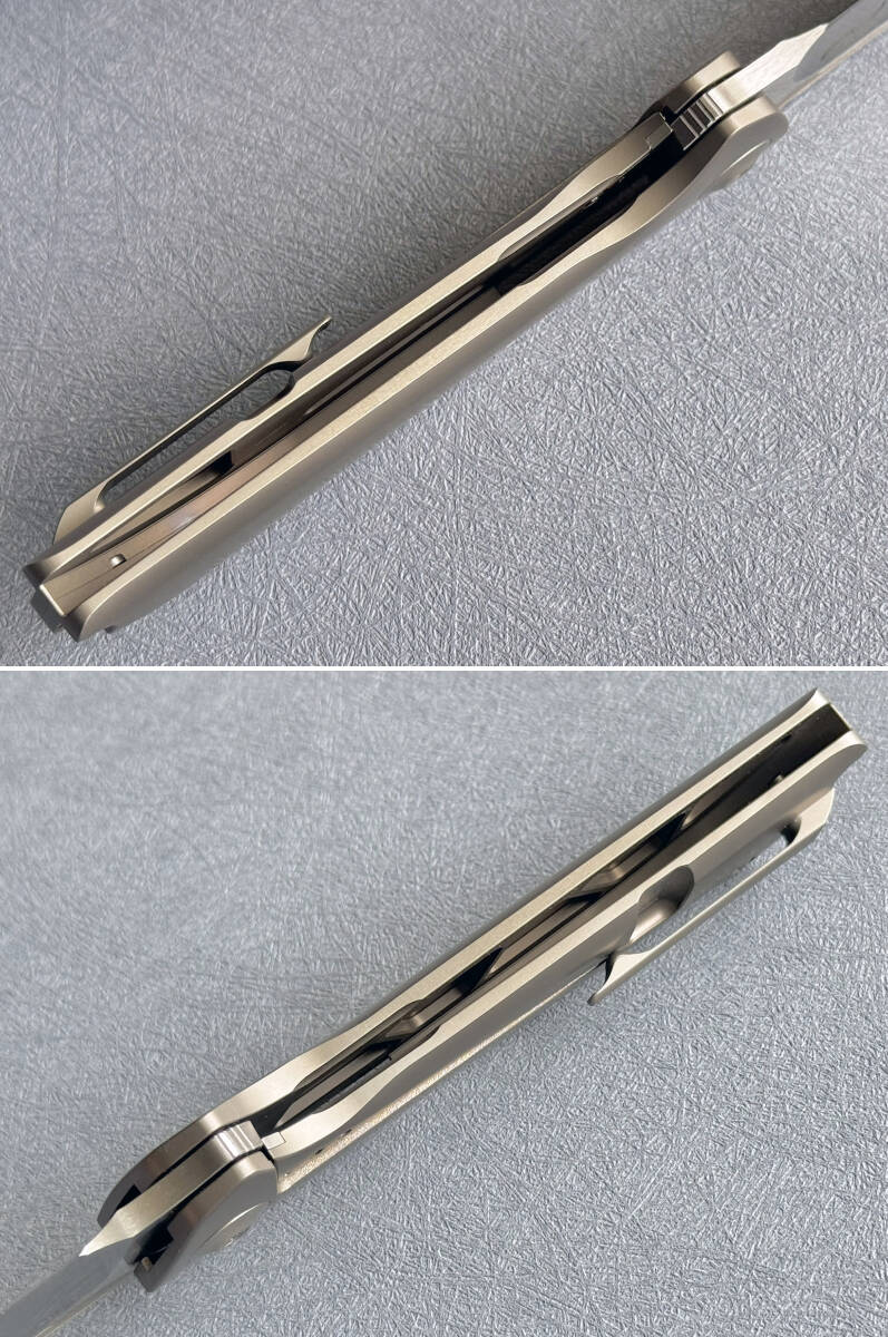 チタンハンドルは Bronzed Titaniumと呼ばれるブロンズ風カラーだと思われますがそれほど銅色が入っているわけではありません。