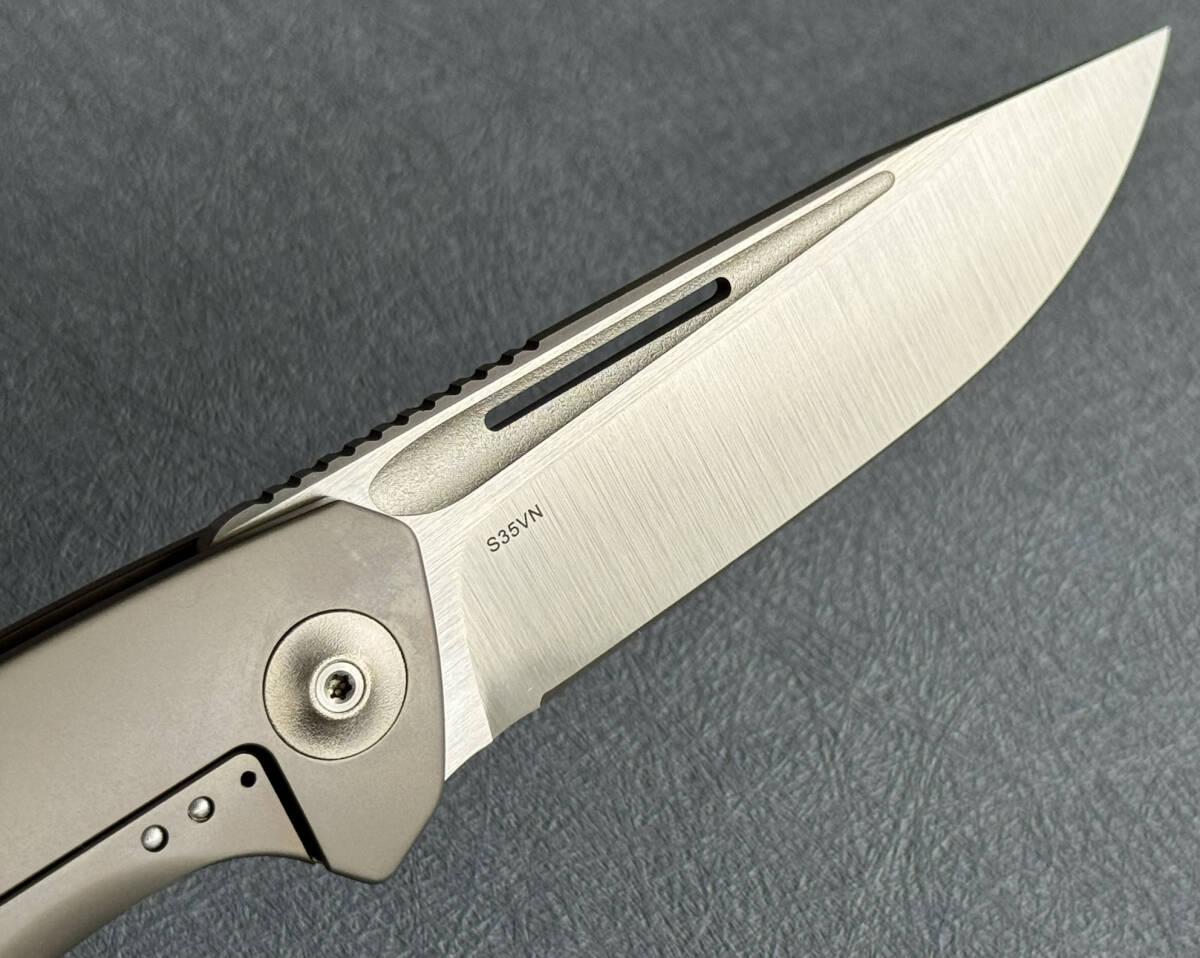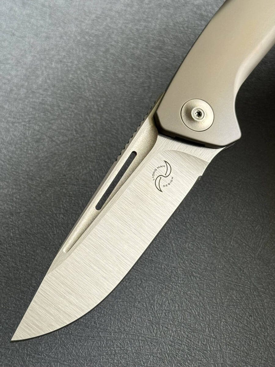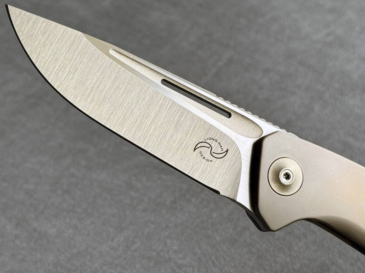 LION MAR DESIGNのロゴが入ったブレイドはS35VN鋼を使用しています。