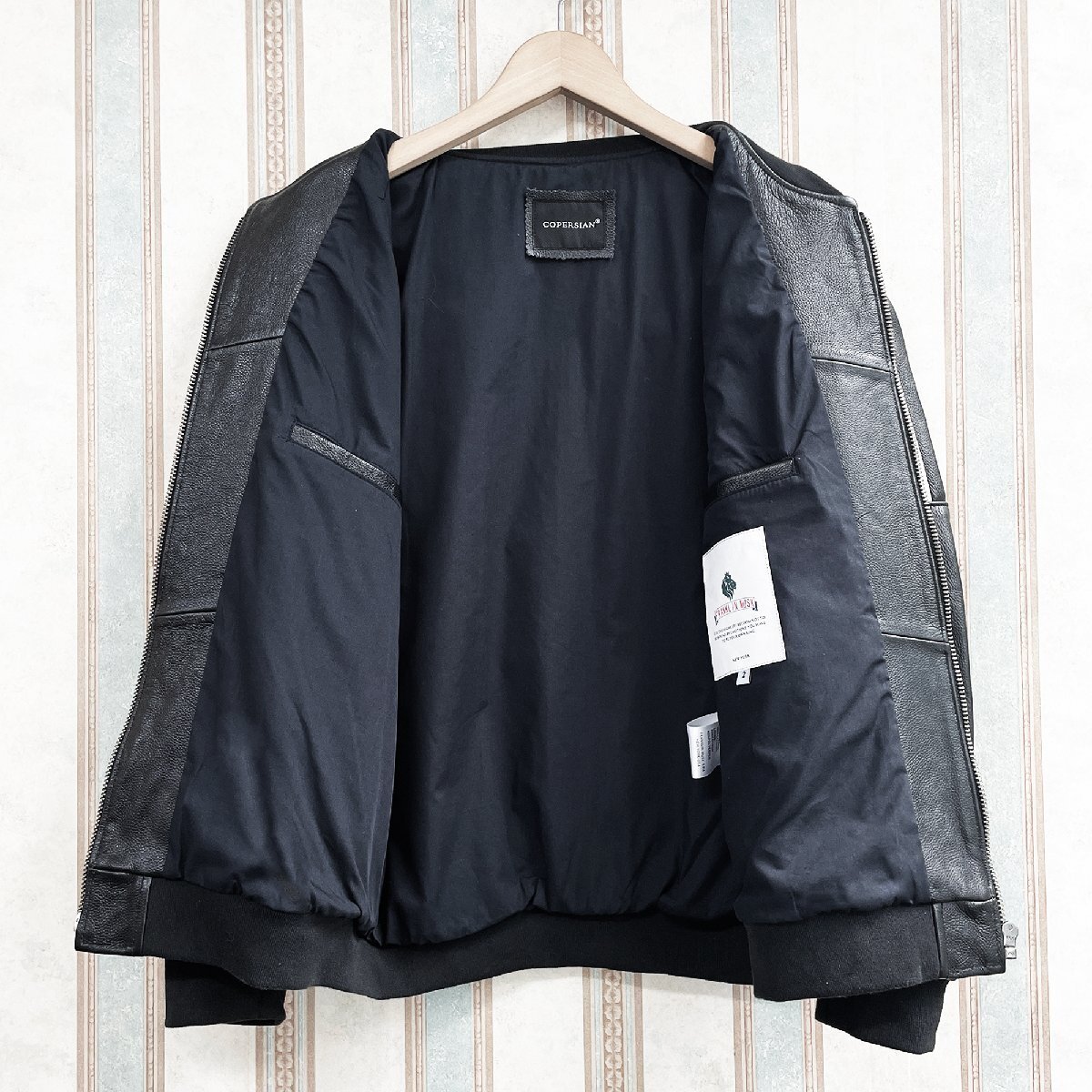 厚すぎず薄すぎない安心感のある程よい厚みの素材です。使いやすく、合わせやすい。後ろ姿もキレイなレザーブルゾン。裏地付きで袖通しもなめらか。さっと羽織るだけでクールに決まる。大胆かつ魅力的でスタイリッシュに男を演出してくれる逸品。ライダースにはもちろん、大人カジュアルにもピッタリの一着です。