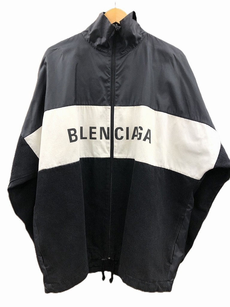 期間限定セール バレンシアガ BALENCIAGA デニム切替 ロゴポプリンジャケット Oversized Printed Denim And Shell Jacket ブラック 52913