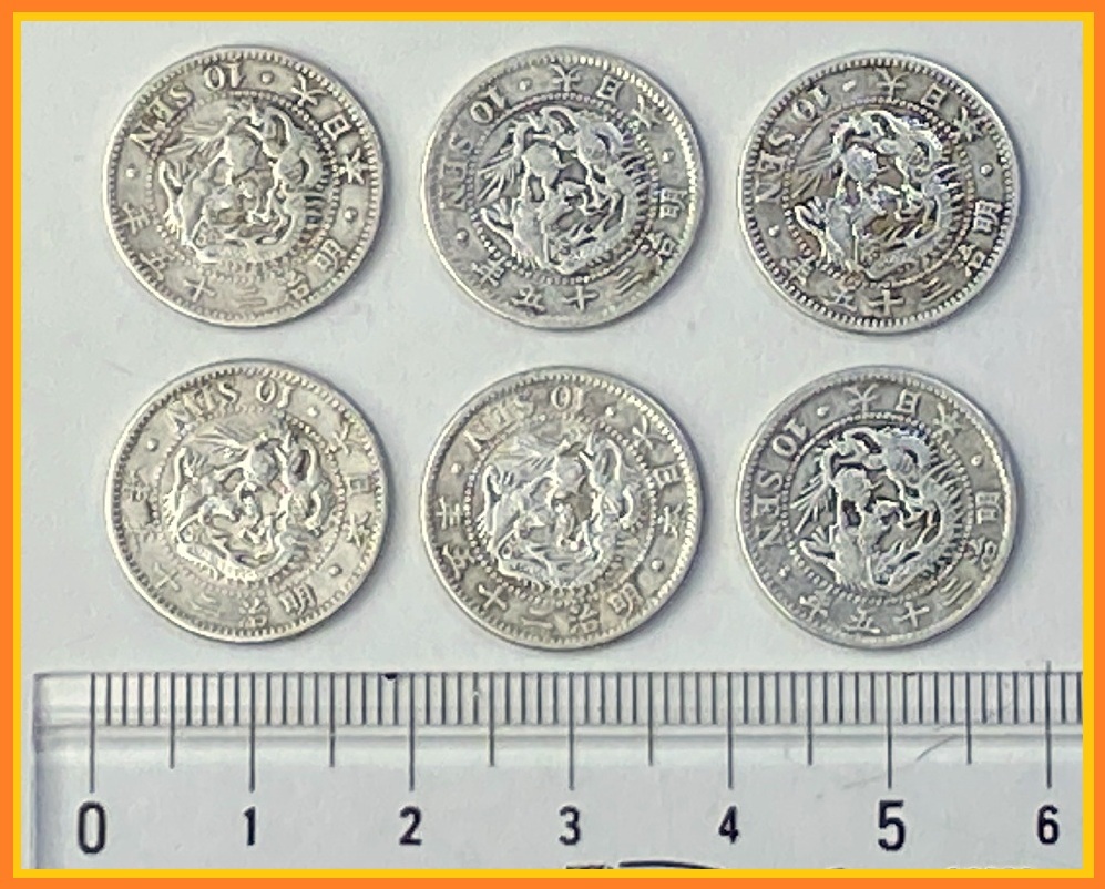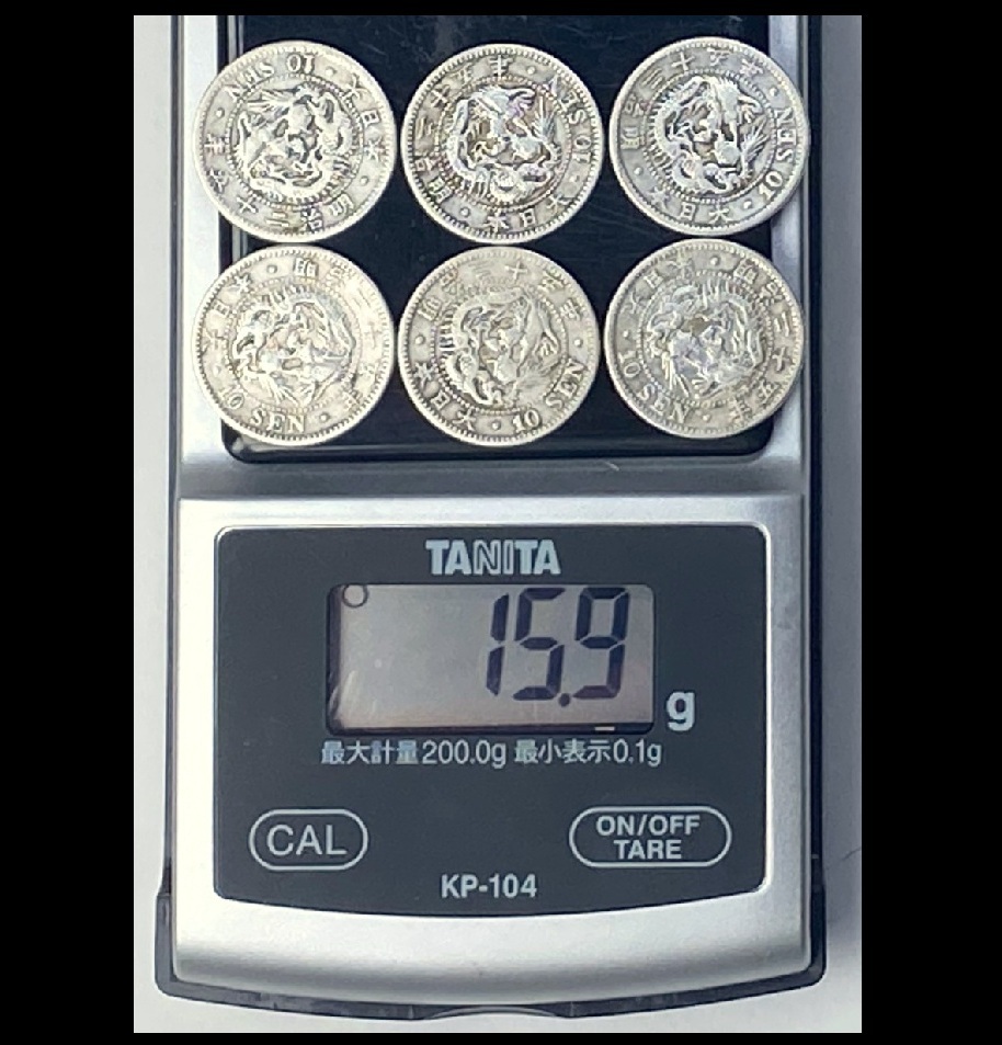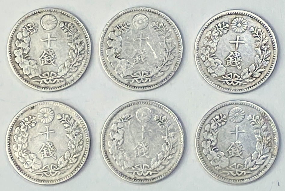 ■□■ I【竜10銭銀貨】明治25年:6枚 ■□■