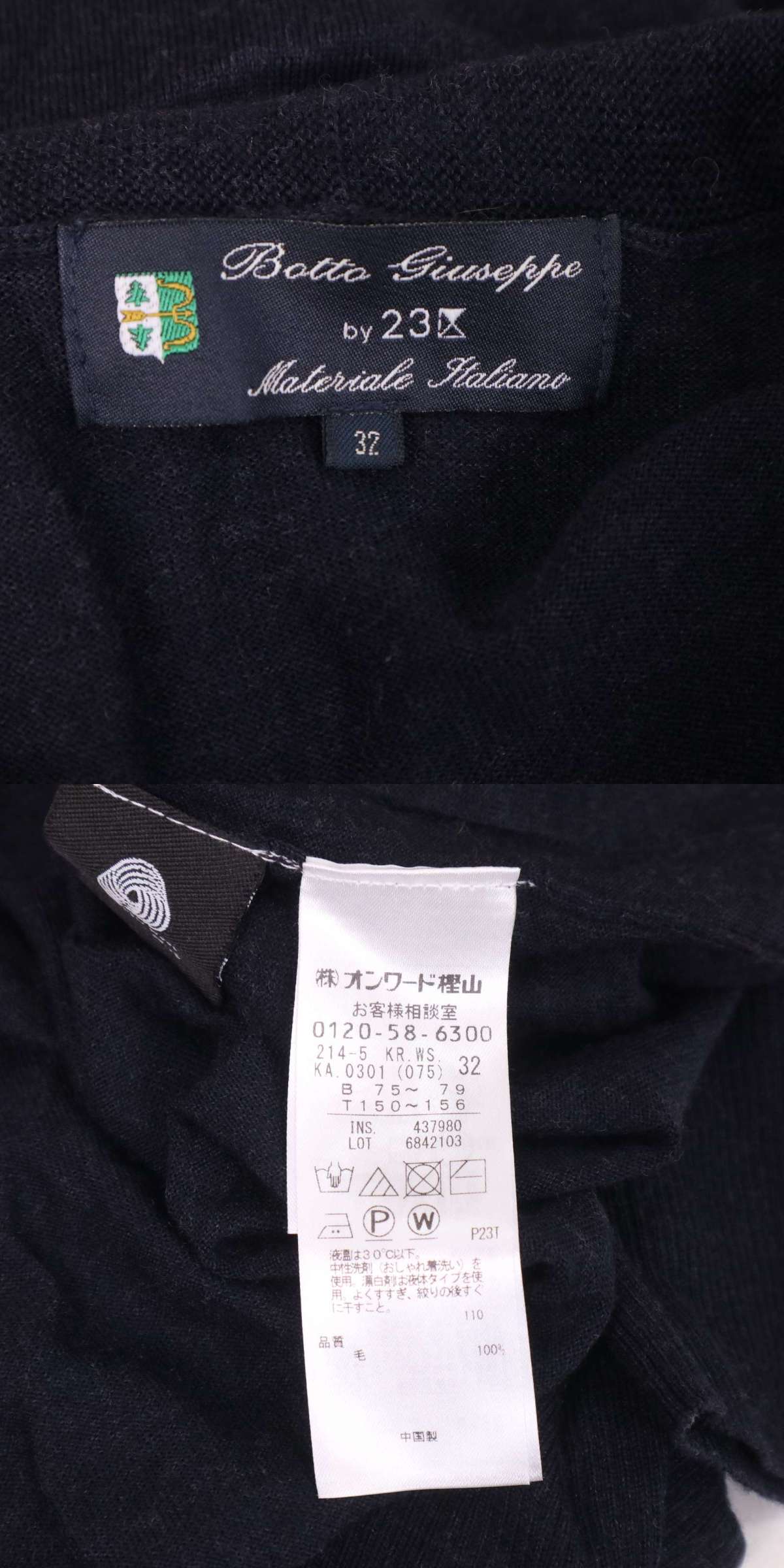 botto giuseppe by 23区 イタリア製生地★ ウール100% ニット カーディガン 羽織り Sz.32 レディース ネイビー 小さいサイズ