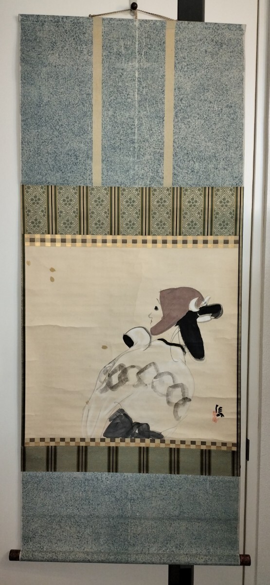 【YN】【真作】北野恒富 花見図 共箱 大阪 日本画 掛軸
