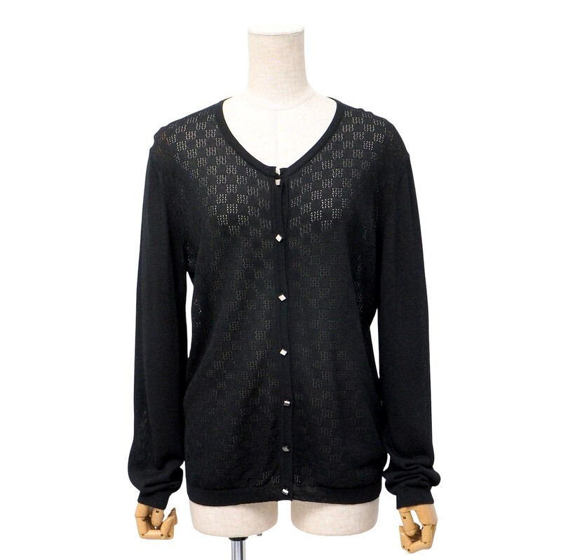 MI1732#イタリア製*ルイヴィトン*LOUIS VUITTON*コットンニット*透かし編みカーディガン*ブラック系*サイズXL | |||