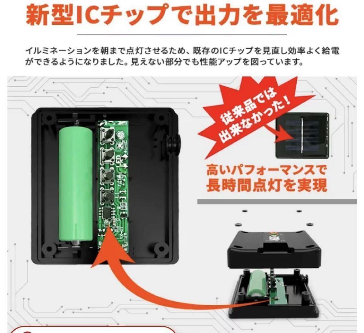 ついに実現!曇りの日も雨の日も朝まで点灯。2022年最新版。8モード、充電表示ランプ、消灯タイマー付き。