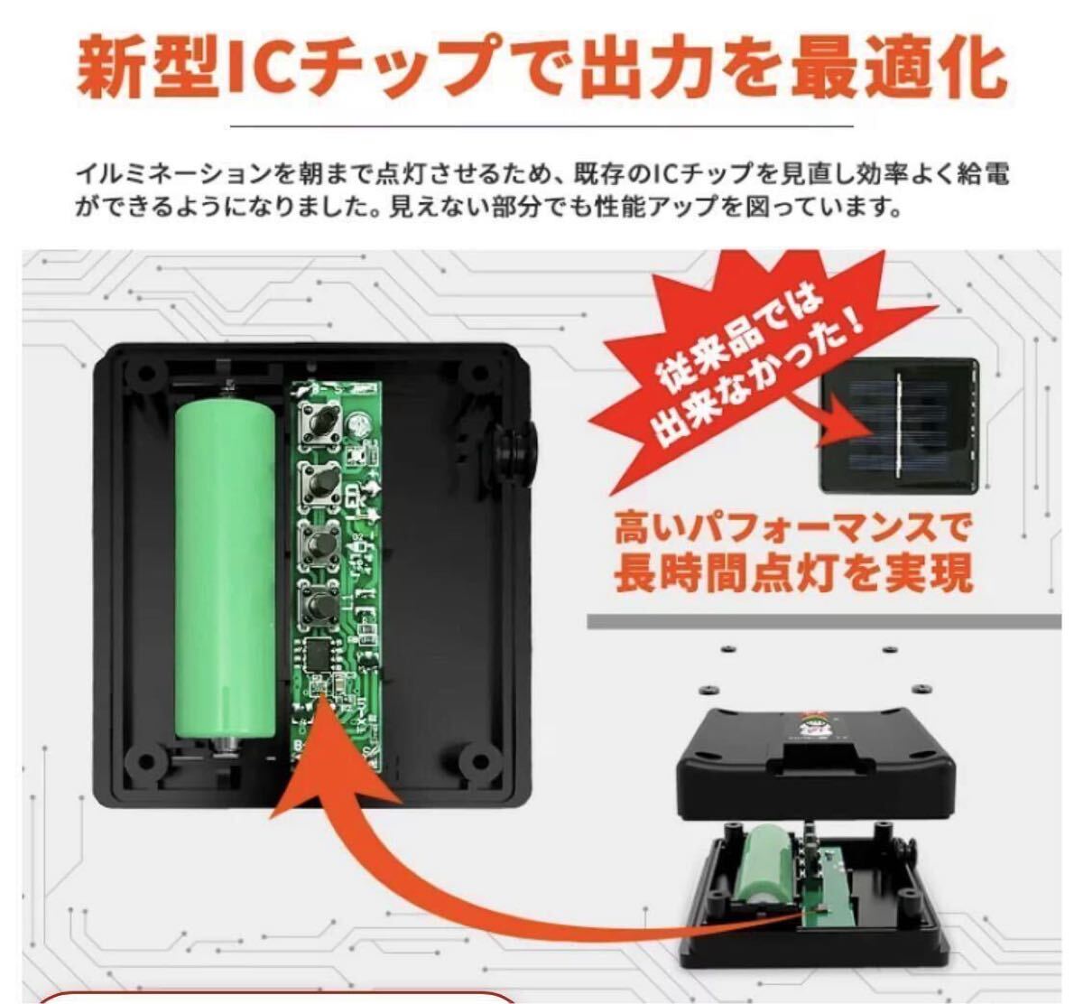 ICチップや電池、パネルを最適化することで安価ながらも長時間点灯するコストパフォーマンスに優れた製品です。