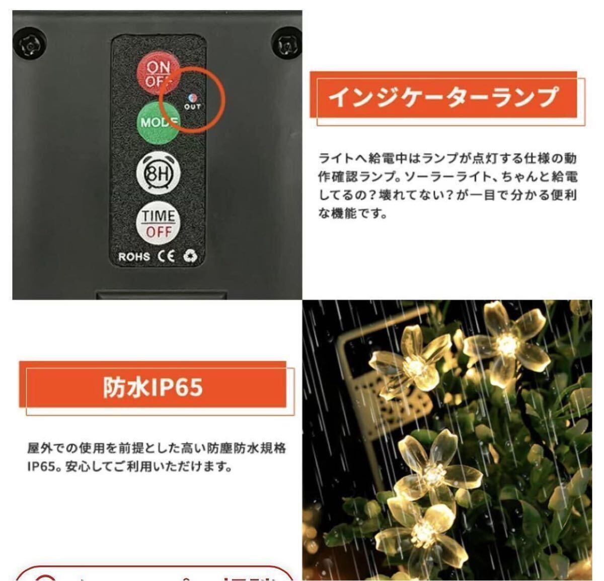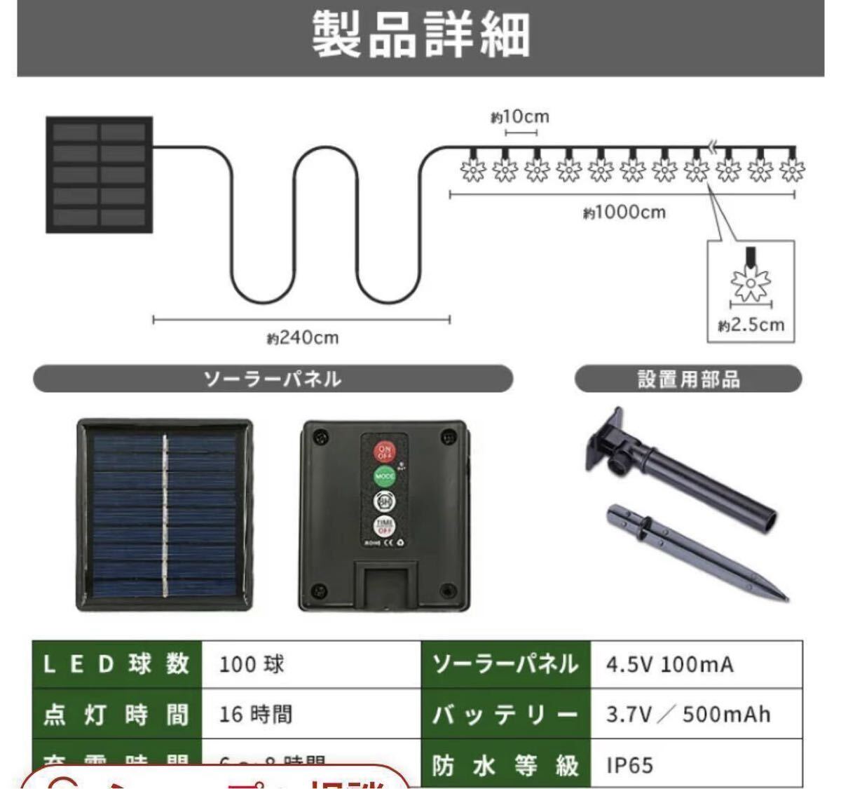 商品内容ソーラーイルミネーション(ソーラーパネル含む)本体×1、支柱×2