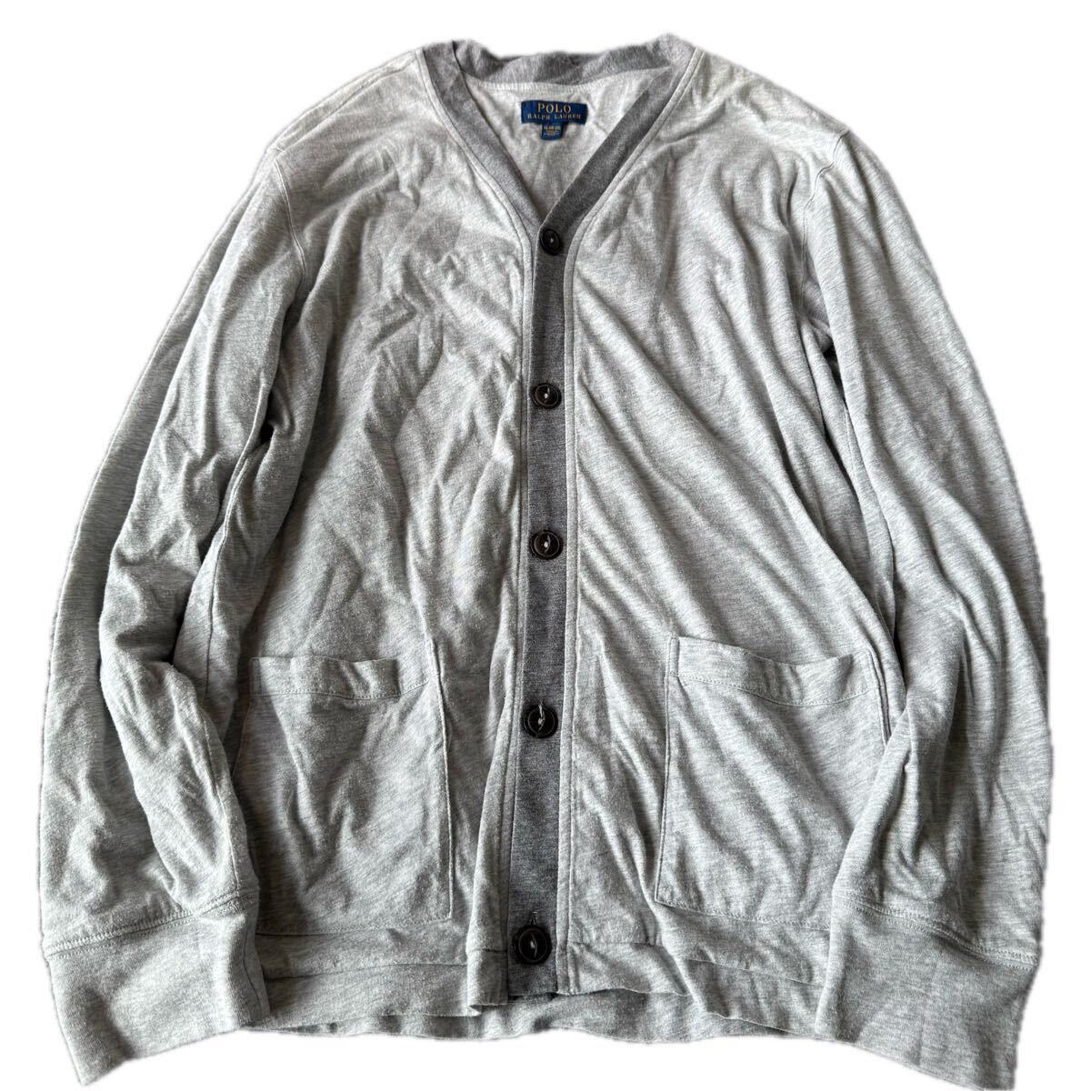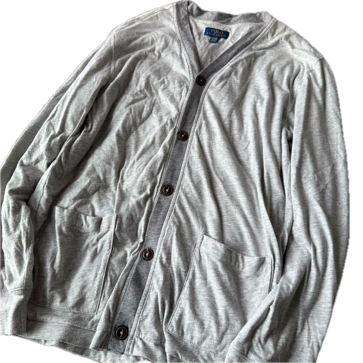 希少XLサイズ!!【polo ralph lauren/ポロラルフローレン】カーディガン グレー コットン ポリエステル メンズ LL 現行タグ 薄手