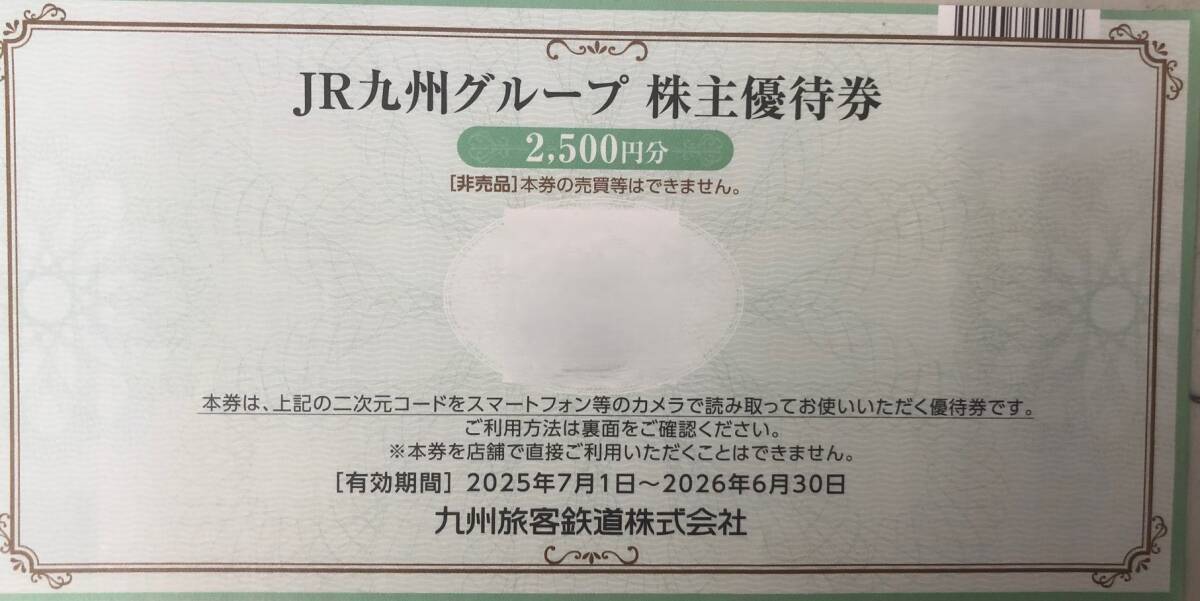 ■JR九州グループ株主優待券2500円分1枚