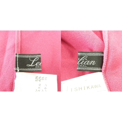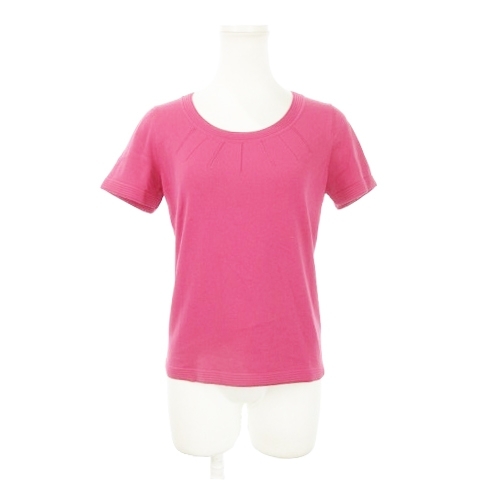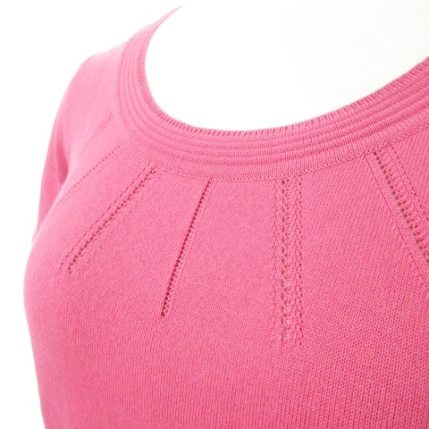 レリアン Leilian ニット セーター ニットソー ラウンドネック 半袖 フロント透かし編み 11 ピンク /AH7 レディース