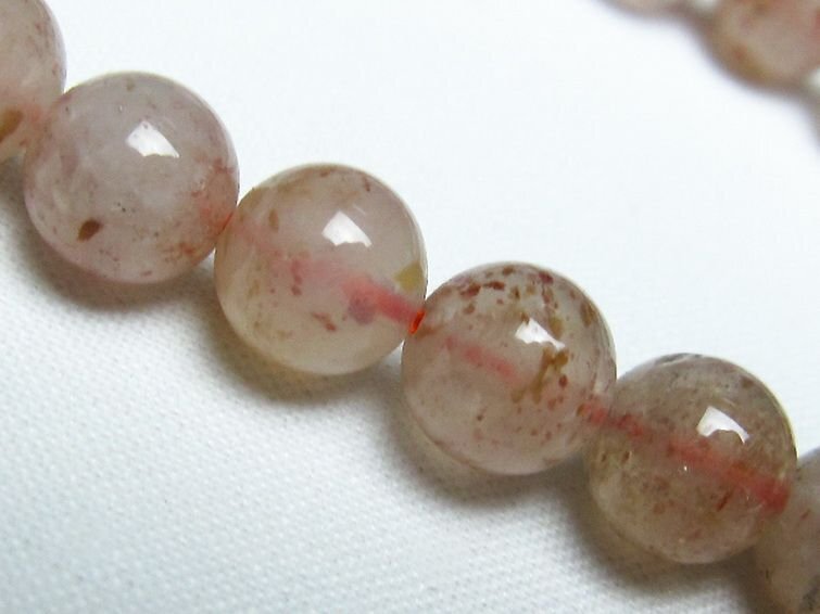■商品名: アフリカンストロベリークォーツブレスレット ■商品ID: L42-953 ■商品重量:約 18.3g ■商品サイズ:内周約:160mm(±5mm)粒直径約:8mm(±0.5mm) 【ストロベリークォーツ(苺水晶)】 ストロベリークォーツはゲーサイトかレピドクロサイトの粒子を内包した水晶の通称で、名前どおりの苺を思わせるような色合いが魅力の天然石です。 正式な鉱物名ではないためストロベリークォーツに明確な定義はないのですが、ゲーサイトかレピドクロサイトの粒子によって赤色に見える水晶がストロベリークォーツとされています。 一般的にゲーサイトを内包したストロベリークォーツのほうが価値が高いとされ、そのなかでも内包物の密度と水晶の透明度のバランスがとれており色合いが美しいものがより良質なストロベリークォーツとされています。 ストロベリークォーツは更年期症状の緩和や若々しさをもたらす効果があるといわれています。 また持ち主の「愛され力」を高めるともいわれているので、良好な恋愛関係を築きたい方はもちろん、芸能関係などの自分を売り込んでいく職業に就く方にもおすすめです。 ⇒ ストロベリークォーツをもっと詳しく ◆ワンポイント情報 現在は高品質なストロベリークォーツの産地として知られるカザフスタンの鉱山が閉山し、どんどん希少性が高まってきています。そのため代替えとしてストロベリークォーツによく似たモスコバイトやピンクエピドートも「アフリカンストロベリークォーツ」の名前で流通しています。 |