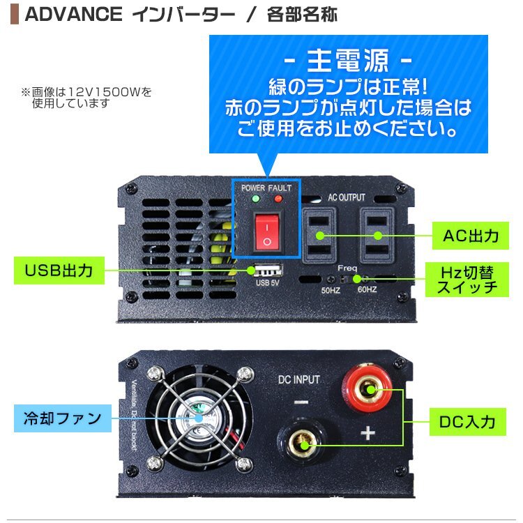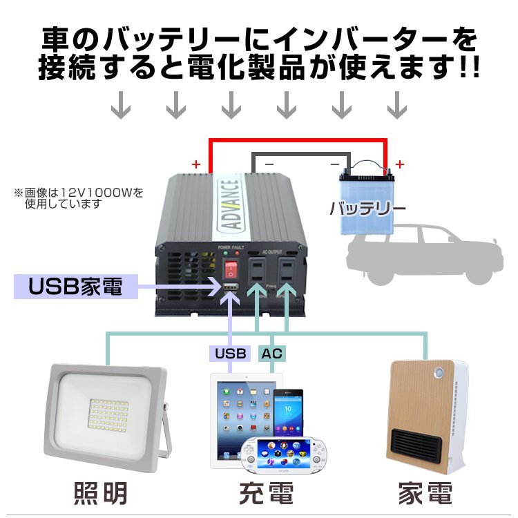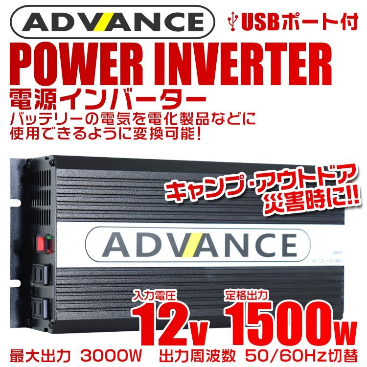 | ADVANCE 修正波 車載 電源インバーター USBポート付 |