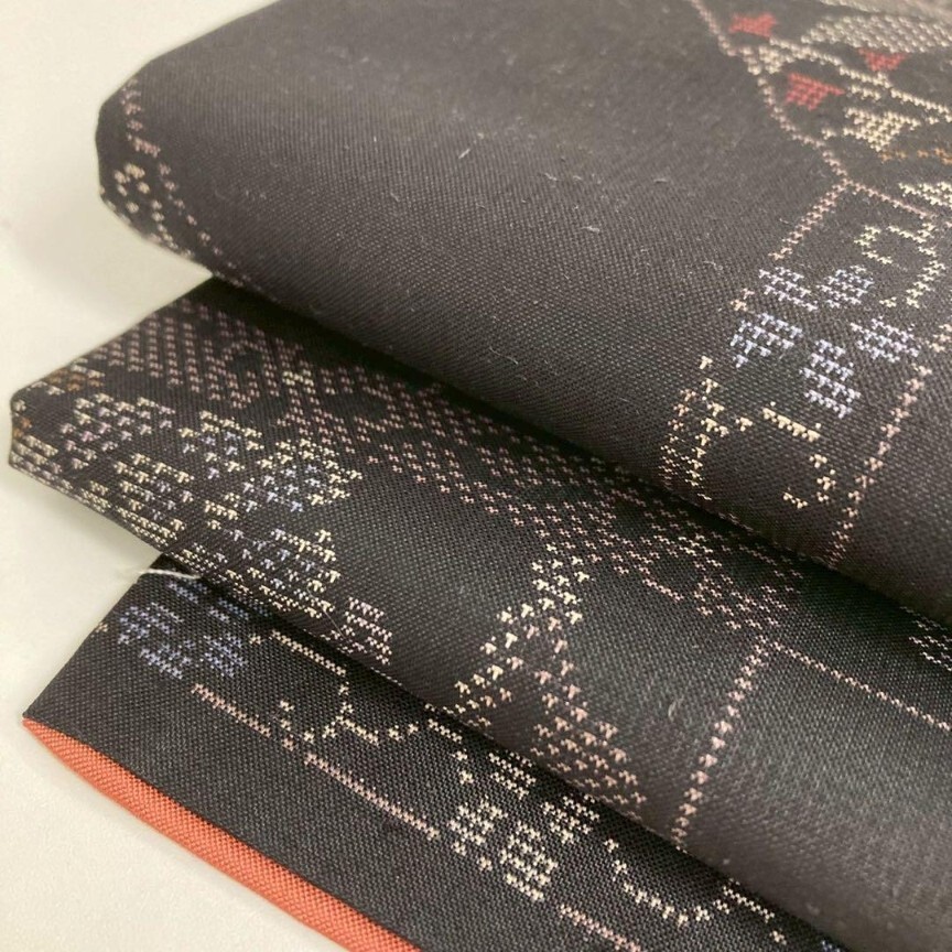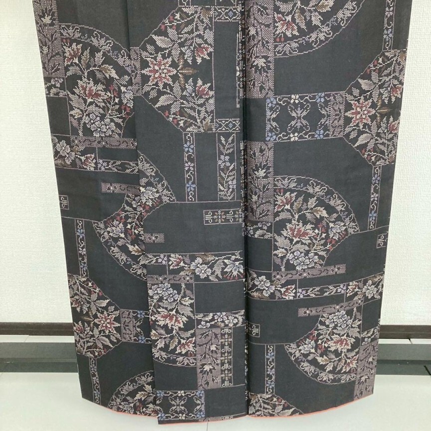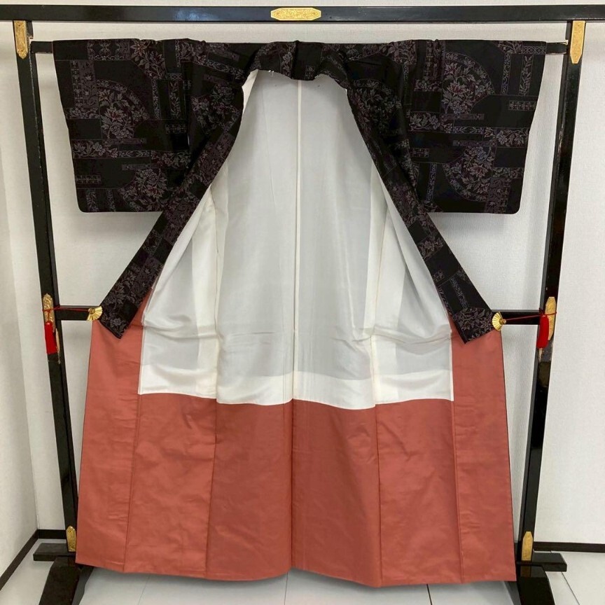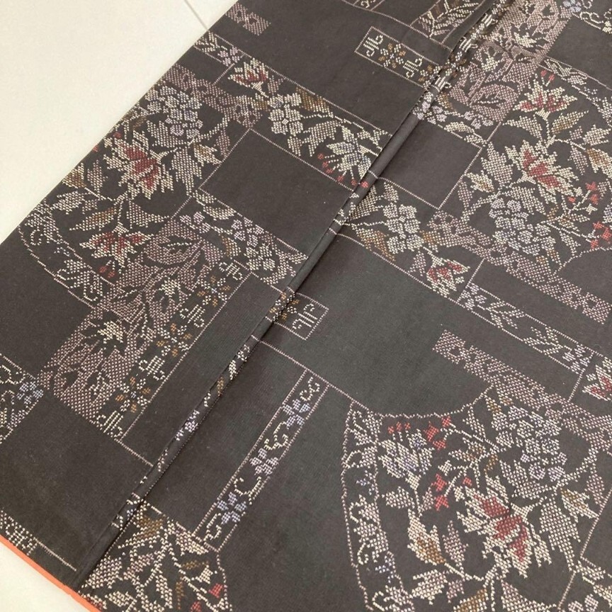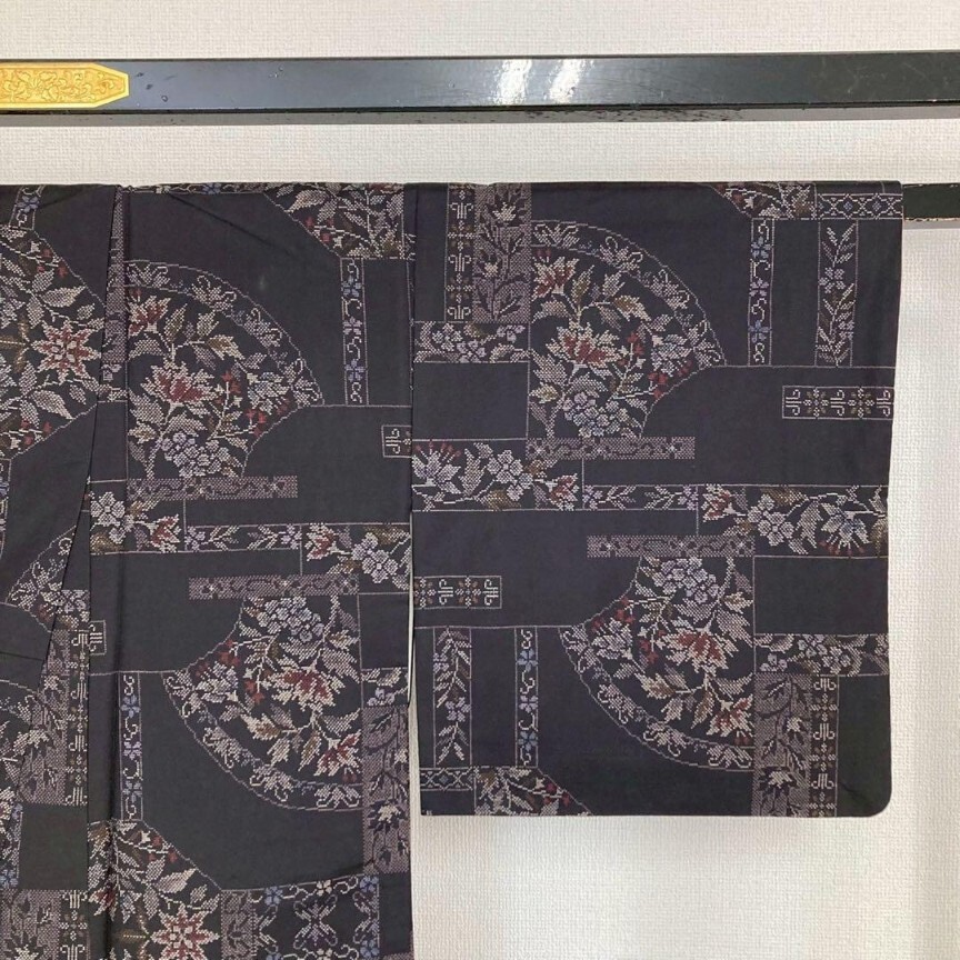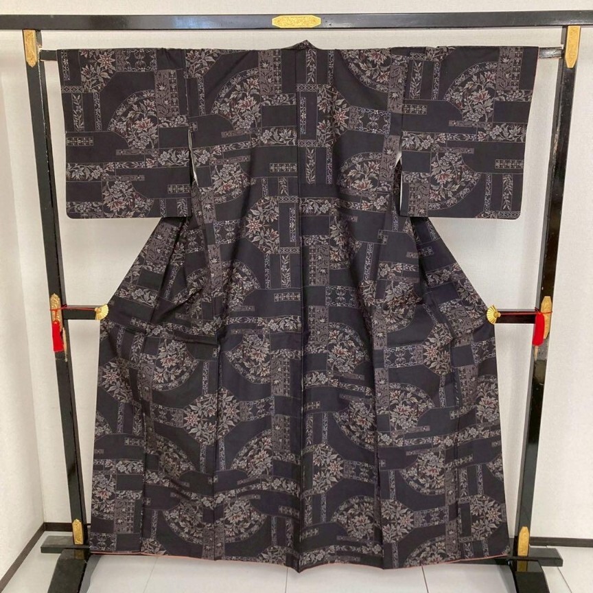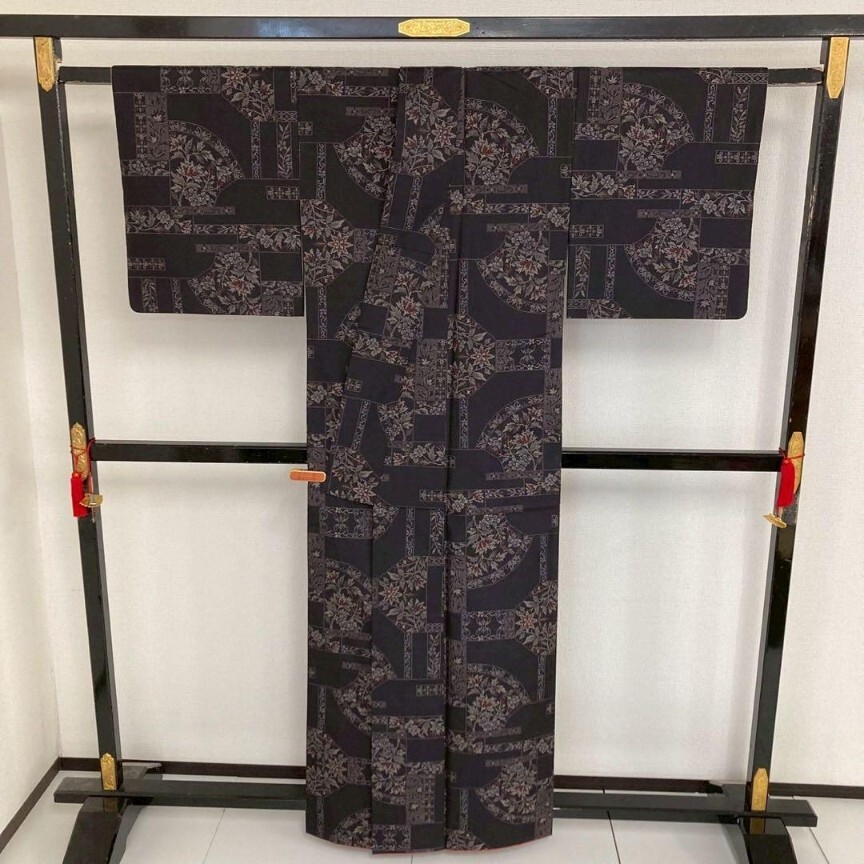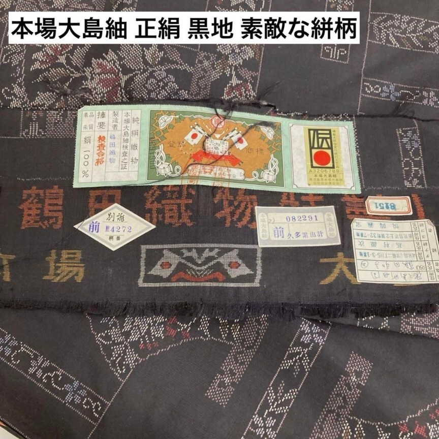 【楓】本場大島紬 正絹 黒地 素敵な絣柄 花 着物 KU-8037