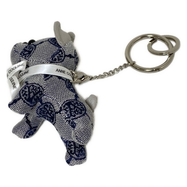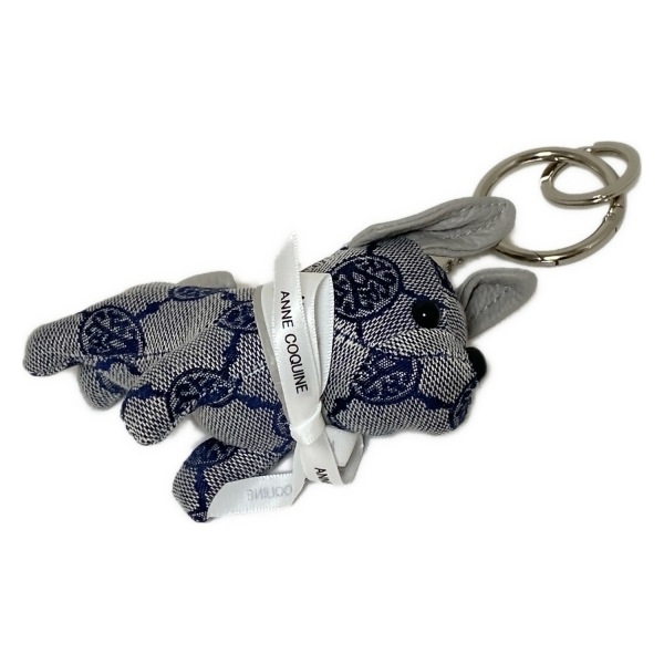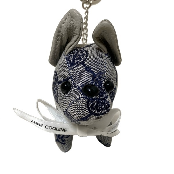 アンコキーヌ Anne Coquine キーホルダー(チャーム) - レザー ネイビー×白×グレー イヌ 美品 キーホルダー