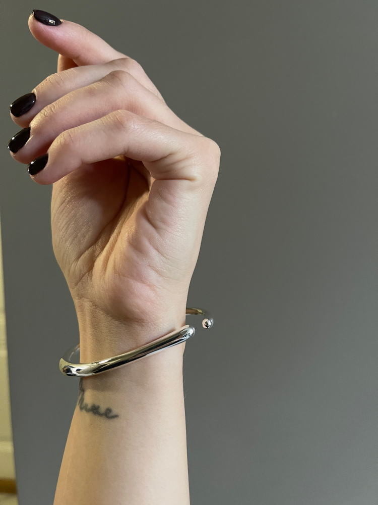 このシンプルでゴージャスなシルバーバングルが