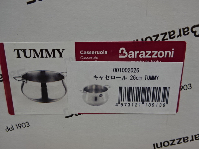 ①【新品未使用品】26cm TUMMY キャセロール 001002026 26×H13.6cm Barazzoni|バラゾーニ イタリア