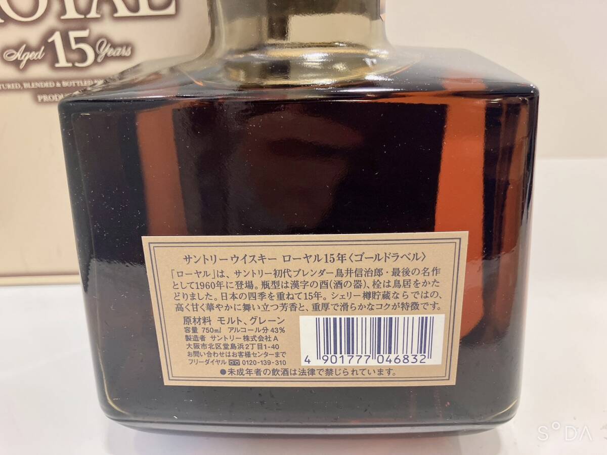 ◆ 【未開栓】SUNTORY ROYAL サントリー ローヤル ウイスキー15年 ゴールトラベル 箱付き