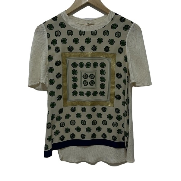 セリーヌ CELINE 半袖カットソー サイズM - アイボリー×グリーン×マルチ レディース トップス