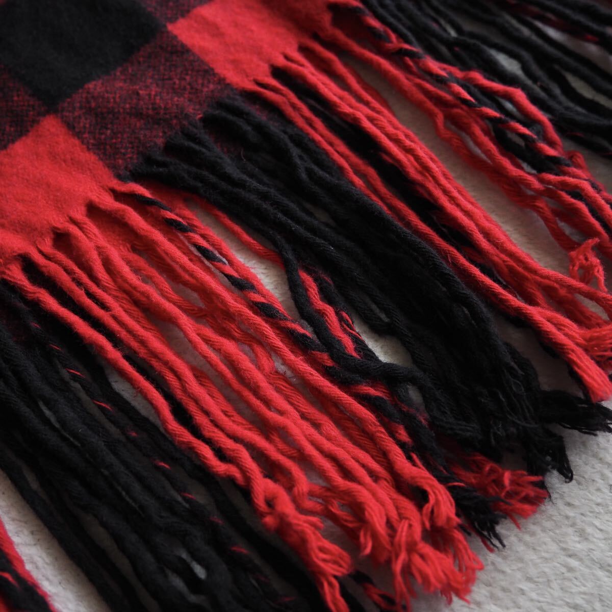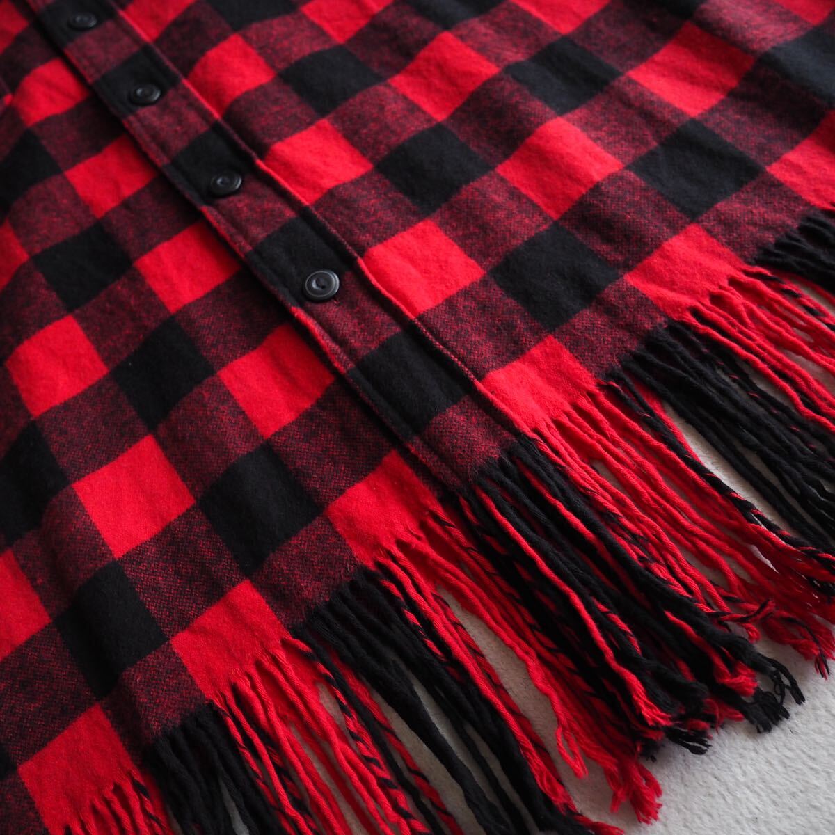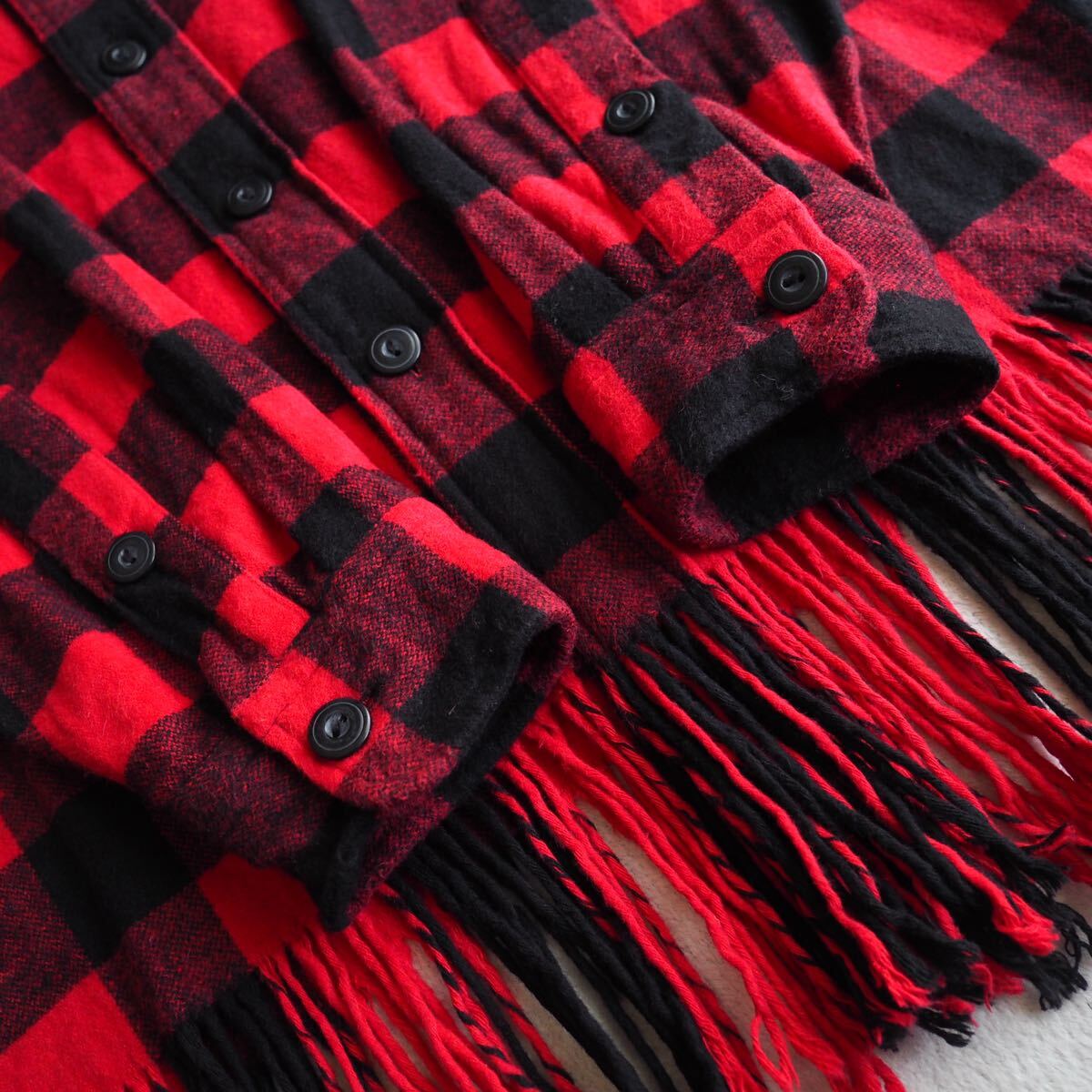鮮やかなプラッドパターンをあしらった、裾のフリンジが特徴の一着となります。