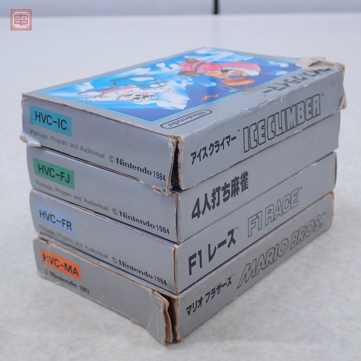 動作保証品 FC ファミコン アイスクライマー/F1レース/マリオブラザーズ 等 まとめて 4本セット 銀箱 Nintendo 任天堂 箱説付 こちらの商品は動作保証品となりますので、一週間の動作保証をお付けします。 ■箱にスレ、汚れ、シワ、ヤケ、キズ、破れ、ツブレ、箱耳の欠損、切り取り跡等があります。 ■取扱説明書にスレ、角スレ、汚れ、折れ、破れ、ホチキス部のサビがあります。 ■カセットにスレ、キズ、汚れ、ヤケがあります。 ■上記以外は未チェックです。 ■写真のものが全てです。付属物の有無や状態については写真からご判断ください。 ■チェックに使用したモニターやチェック機器等は、特に表記がない限りは付属いたしません。 ■商品到着後、当店の保証期間中は、商品及び箱や取説、付属品などを1つでも廃棄や破損をしないようにお願い致します。廃棄や破損をした場合、商品に問題があった場合でも対応や返金などの対処ができなくなります。 | |||