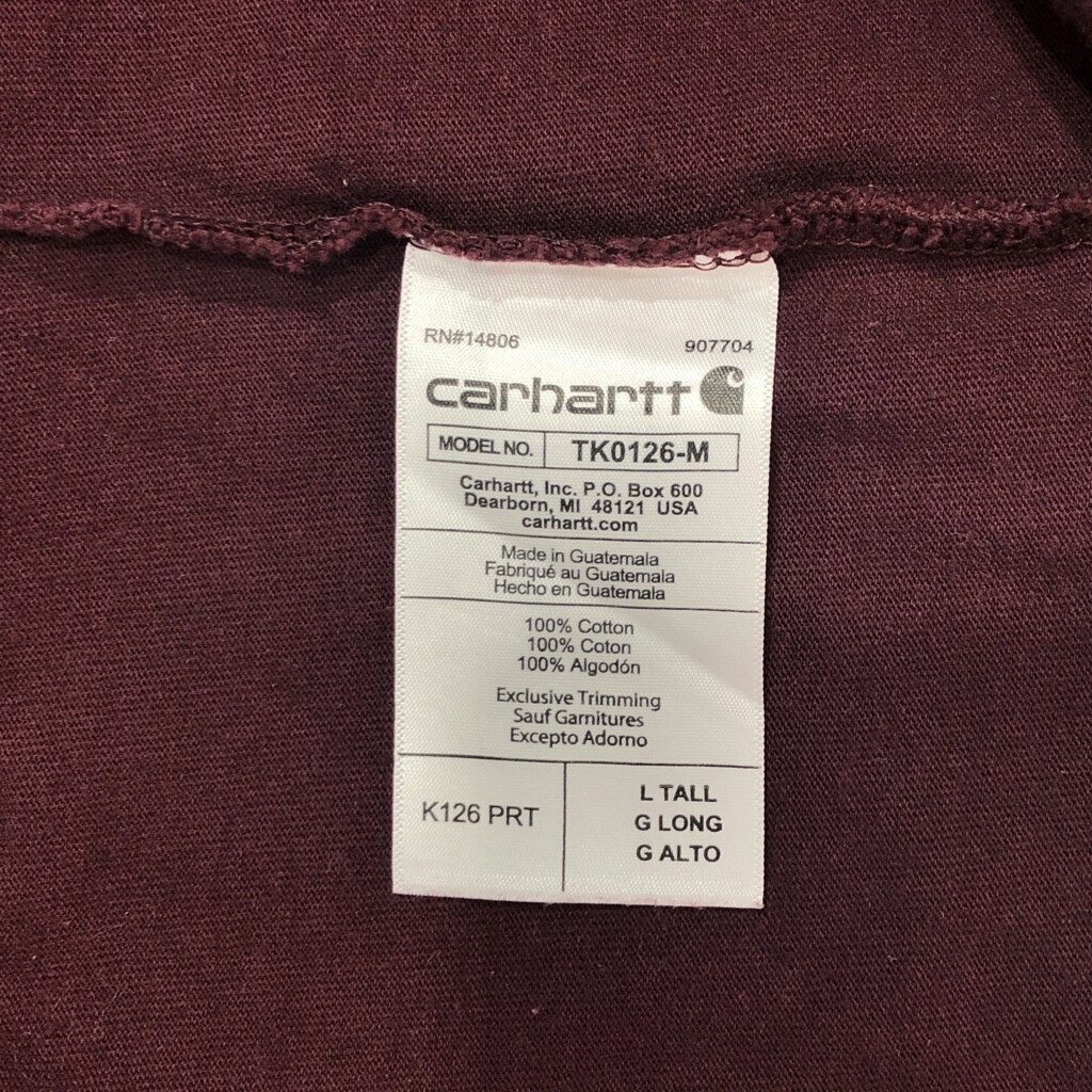 【商品管理番号】 T8174 【ブランド】 Carhartt/カーハート 【サイズ】 L 【実寸サイズ】 肩幅:約54cm 着丈:約79cm 身幅:約63cm 袖丈:約71cm 【主な素材】 表地 : コットン 【色】 ワインレッド 【仕様】 【状態】 特記事項:色褪せ |