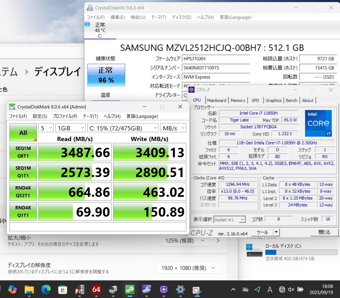| CPU: 超高速 Intel 8コア 卓越性能 第11世代Core i7-11850H 2.5Ghz、 8コア16スレッド (ターボ・ブースト利用時の最大周波数 4.8GHz) |