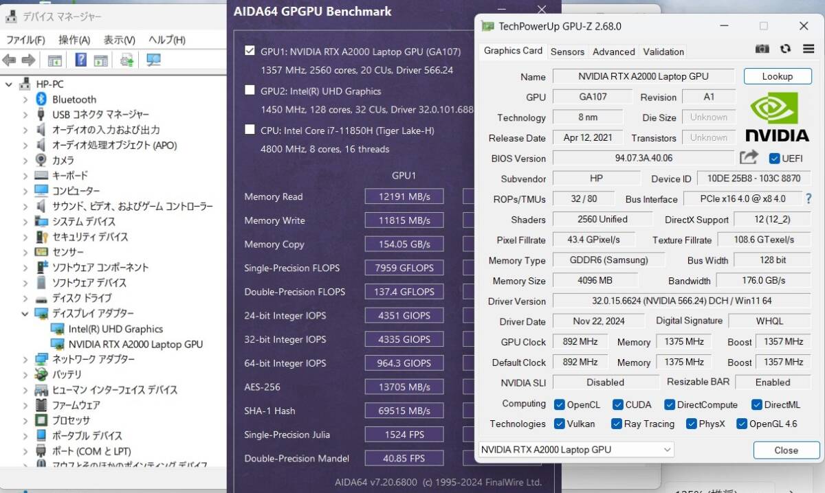 | ディスプレイ: フルHD 15.6インチ高輝度 広視野角 LEDバックライト 1920 x 1080解像度 グラフィックス NVIDIA RTX A2000 Laptop 搭載、大容量 4096M専用ビデオメモリーvRAM 快適使用体験! |