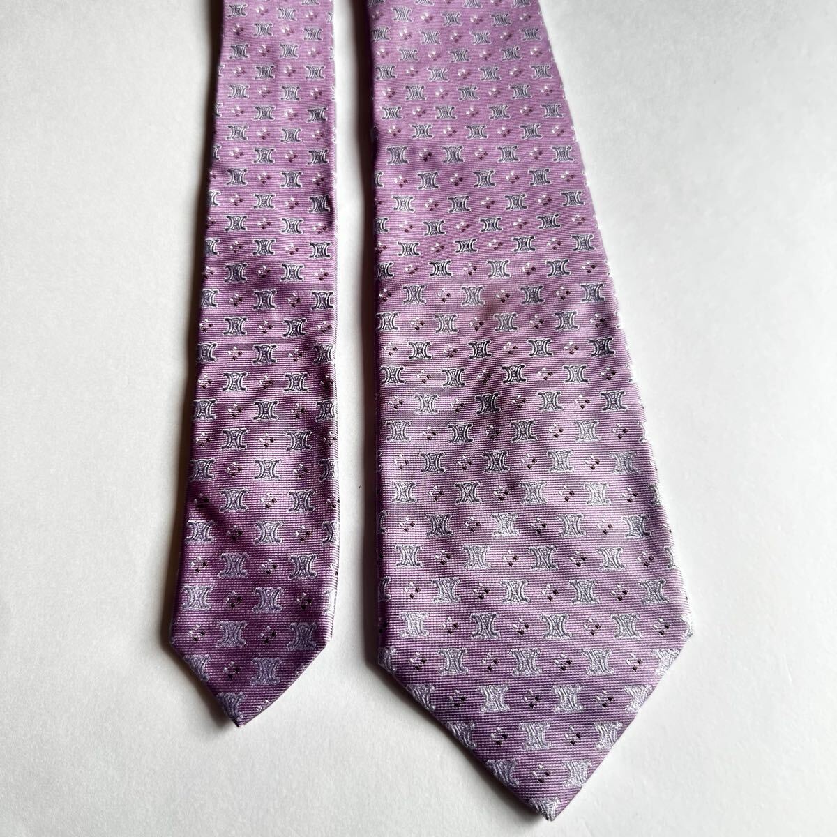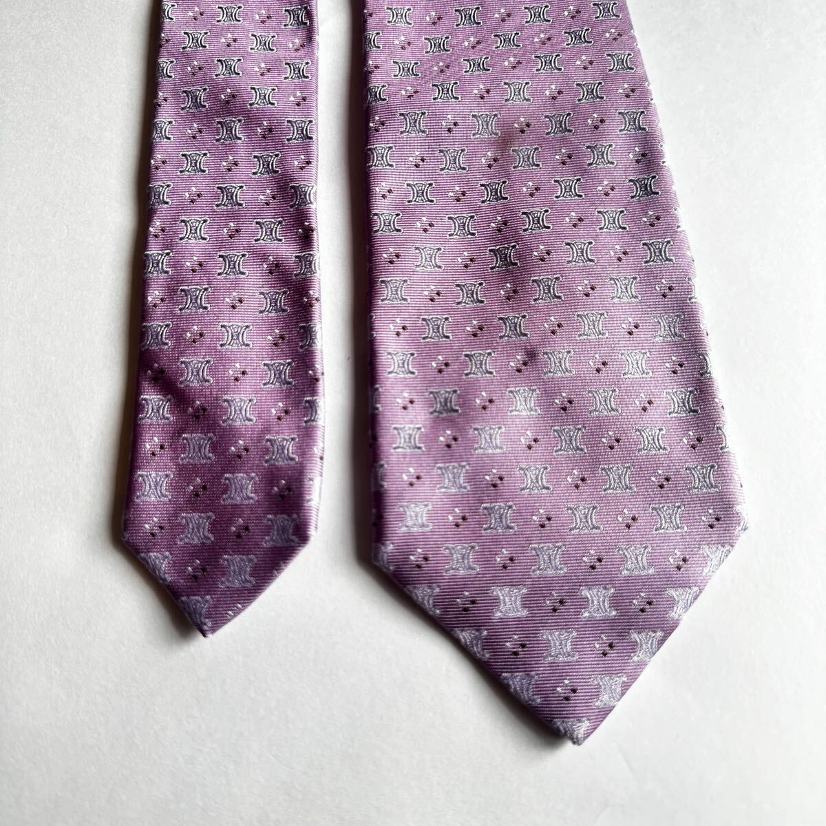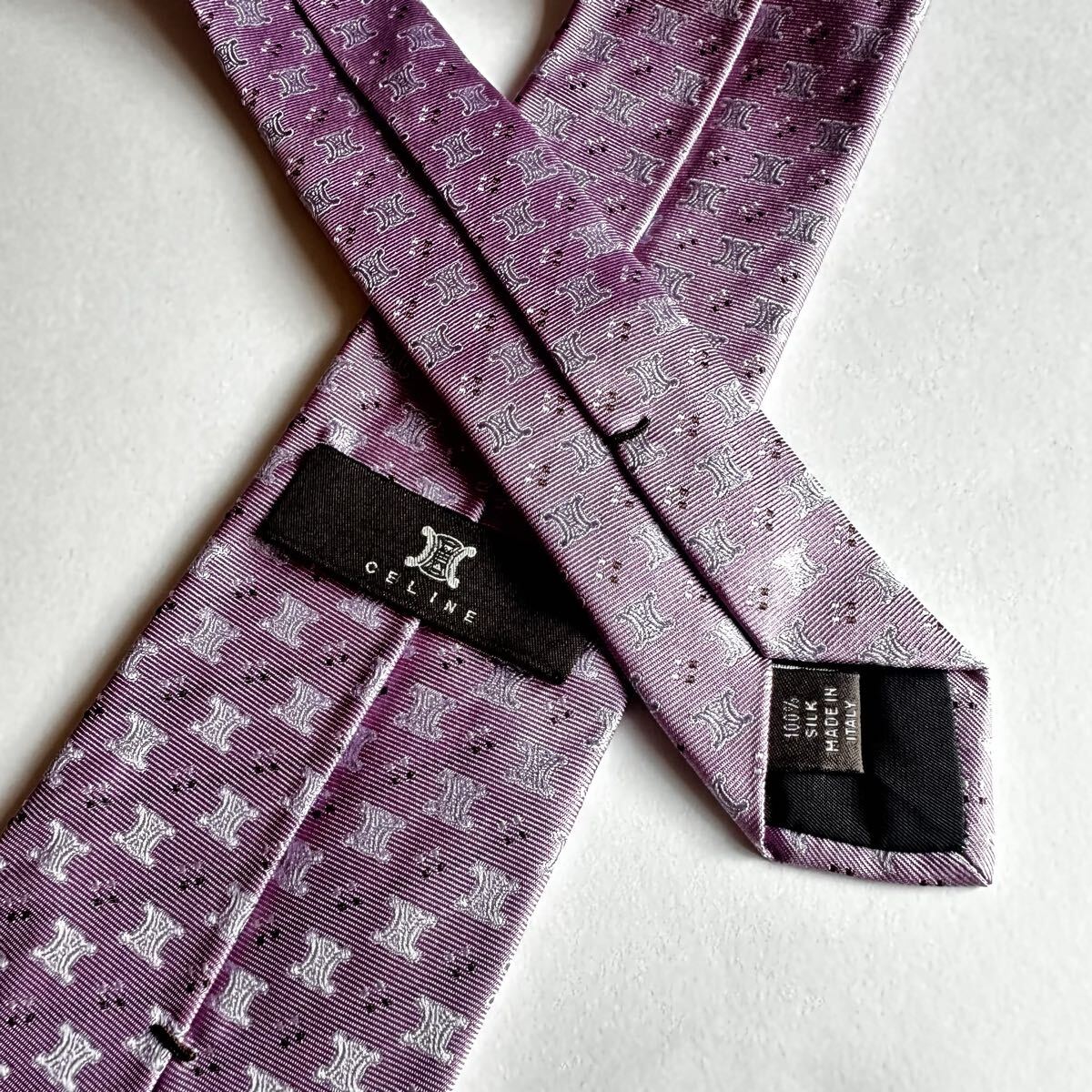 薄紫のシルク製ネクタイ、CELINEのパターンデザイン