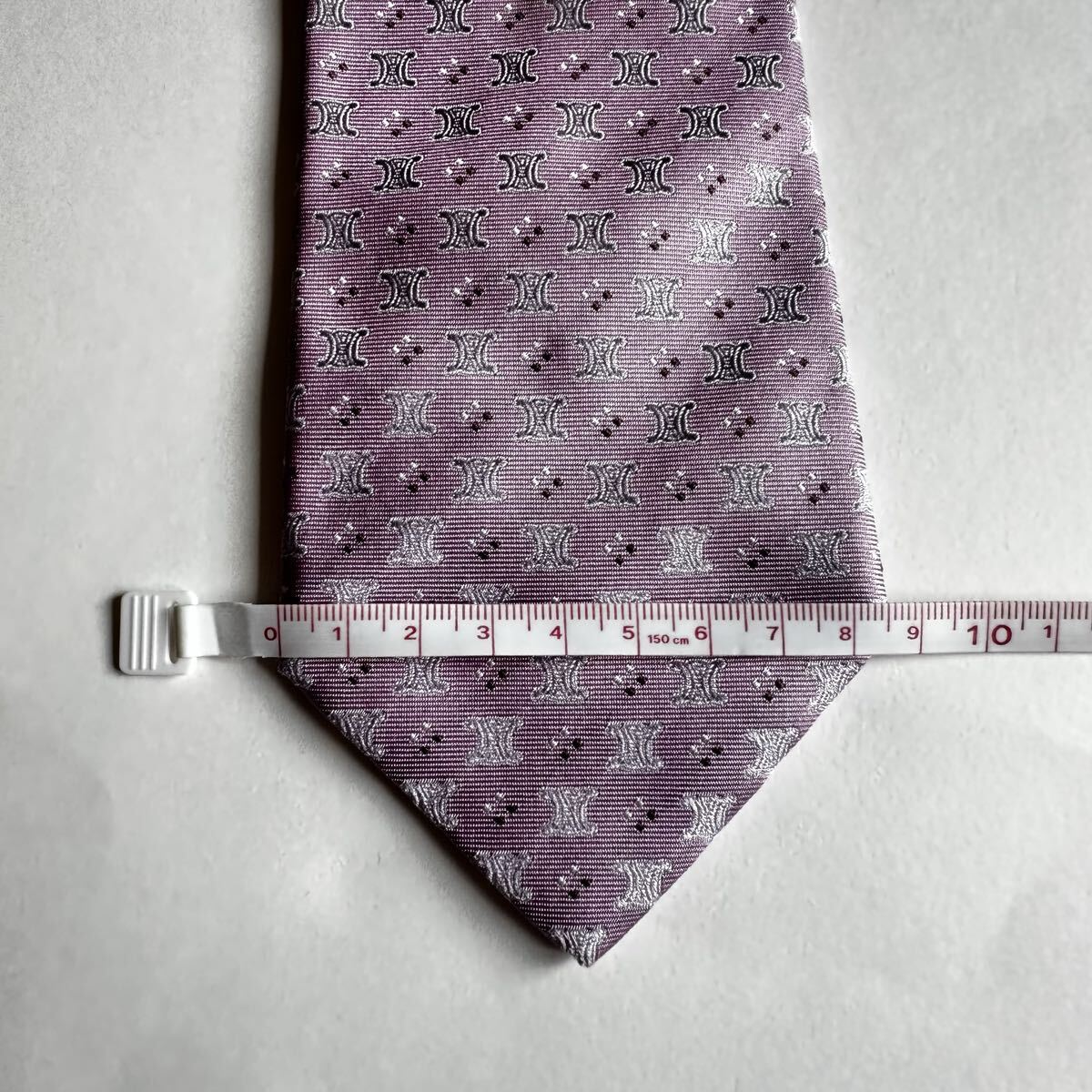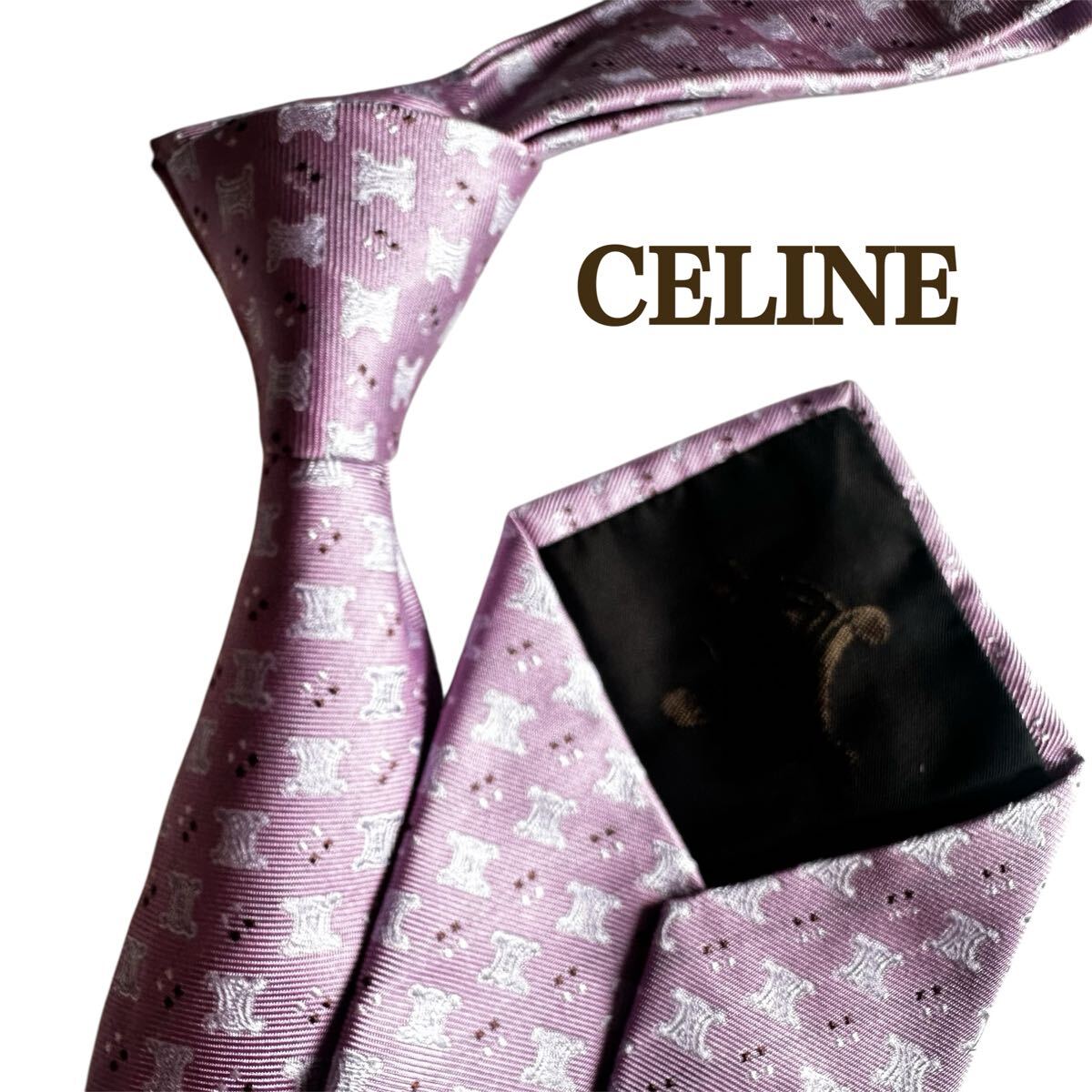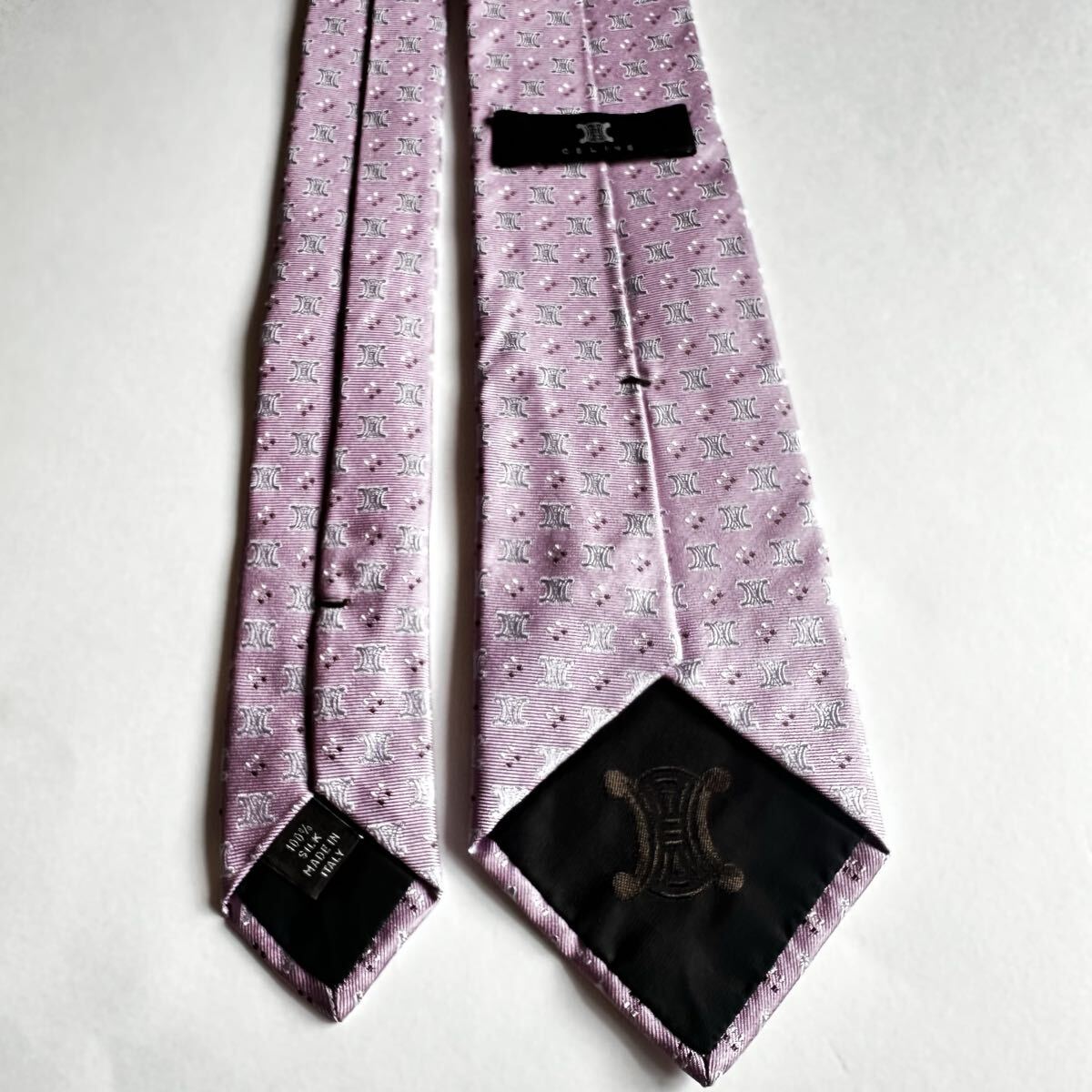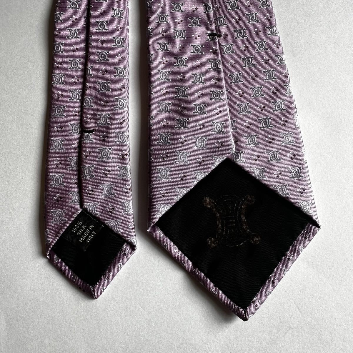 薄紫のシルク製ネクタイ、CELINEのパターンデザイン