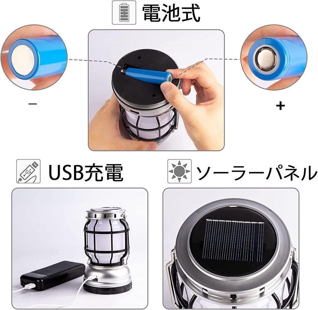 【USB&ソーラー充電式】USBとソーラーの2種類給電方式があります。LEDランタン本体にはUSB充電口を設けるので、パソコン、モバイルバッテリーから約3.5H充電完了です。また、ソーラーパネルを搭載し、日当たりに置いて自動充電できます。ソーラーランタンなら、外出先でも太陽の光さえあればどこでもいつでも充電可能です。いざという時にも安心です。