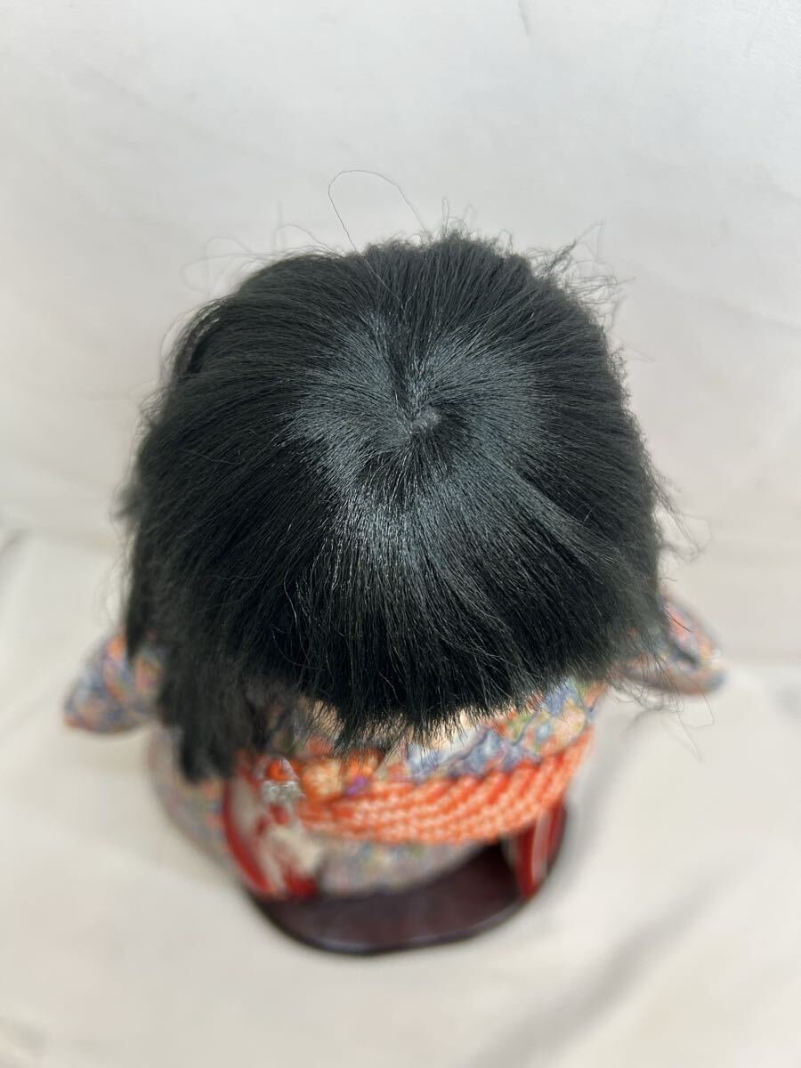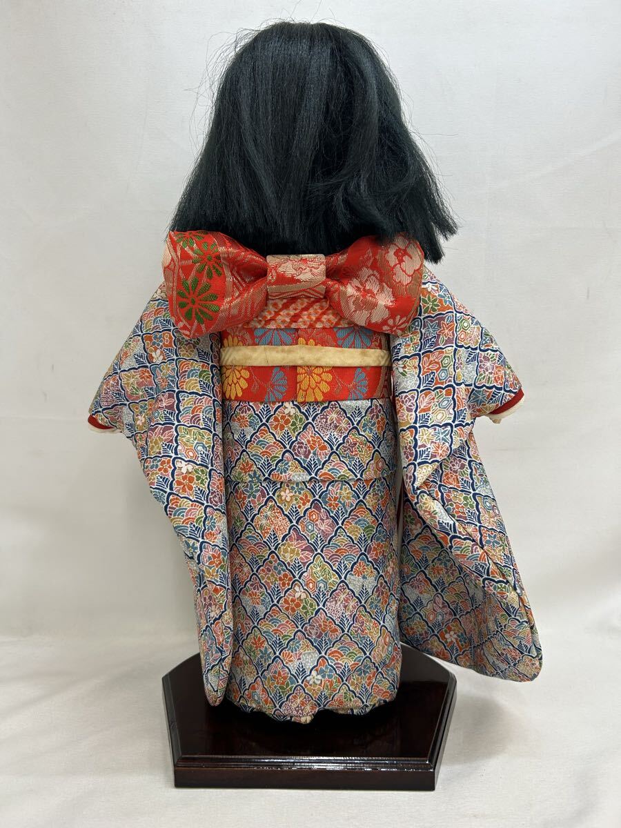 ST1010 吉徳大光 市松人形 日本人形 着物 女の子 少女 黒髪 おかっぱ 台座あり