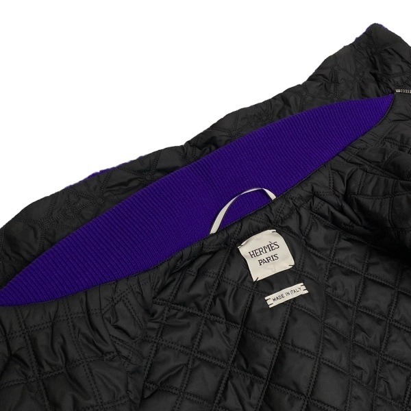 エルメス HERMES ブルゾン サイズ40 M 3H0130DM - ウール パープル×黒 レディース 長袖/キルティング/冬 ジャケット