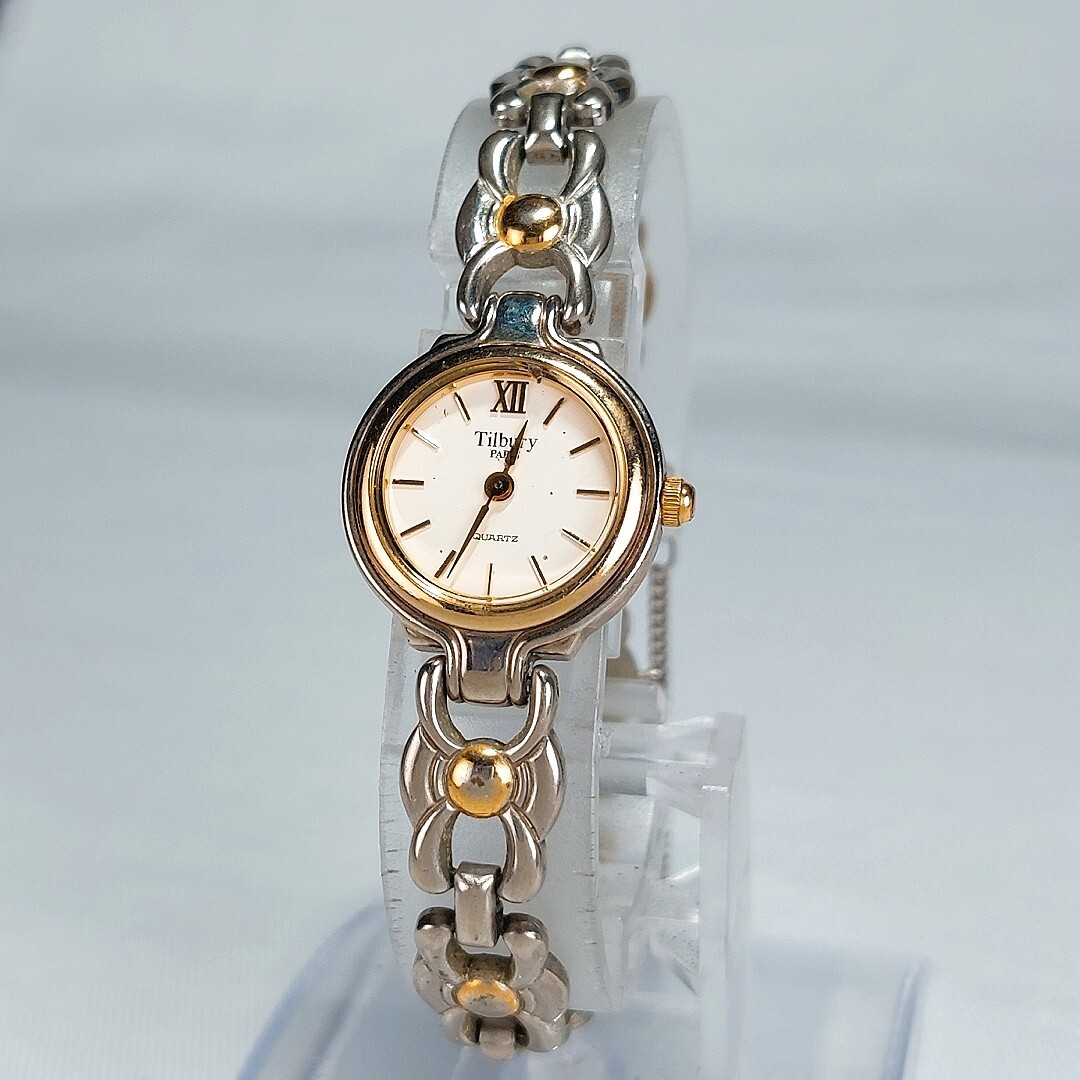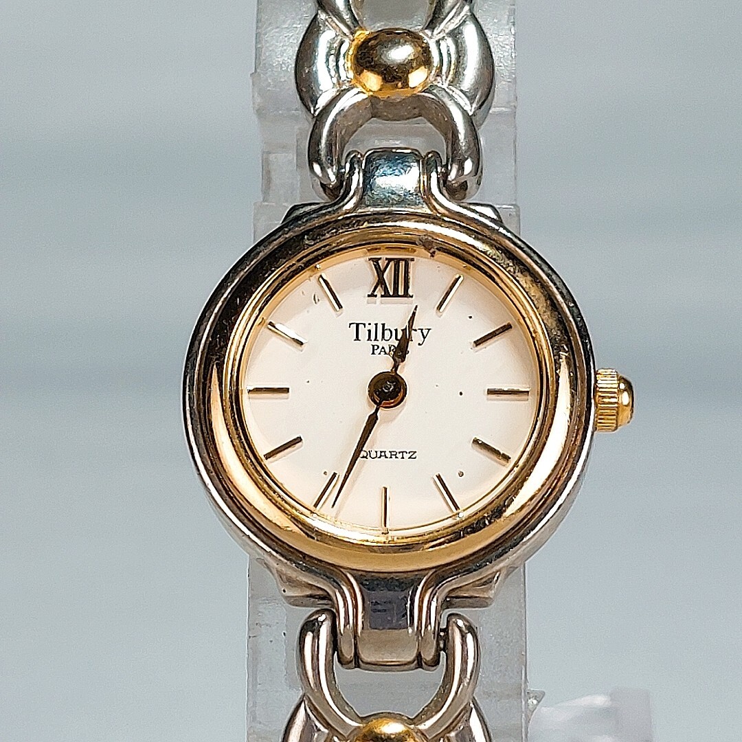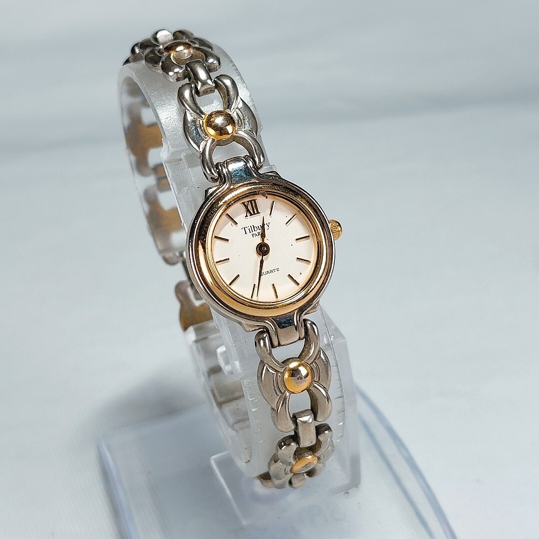 美品 Tilbury ティルベリー 3050159 アナログ クォーツ 腕時計 スモールサイズ ホワイト文字盤 メタルベルト ステンレス 新品電池交換済み