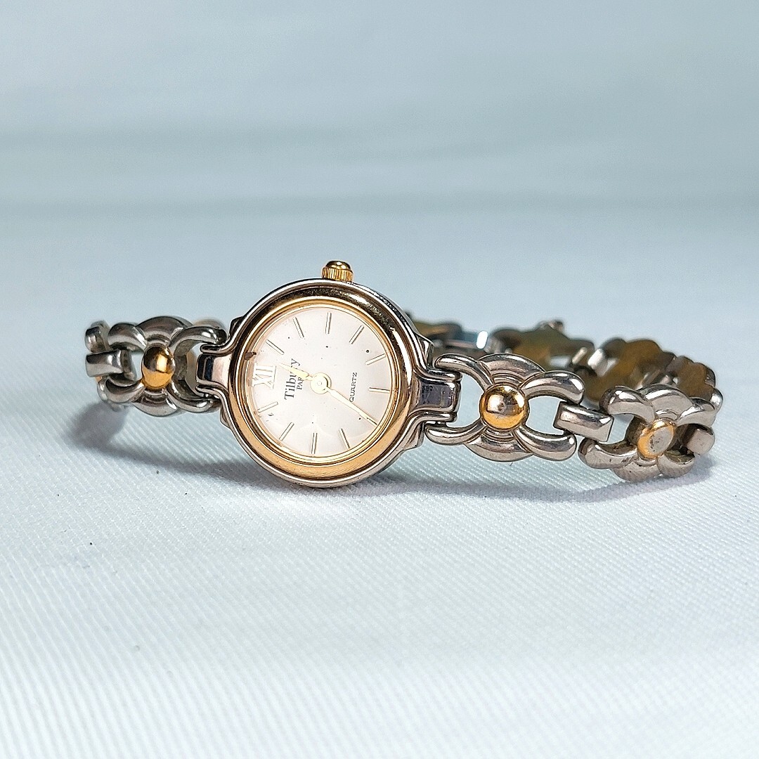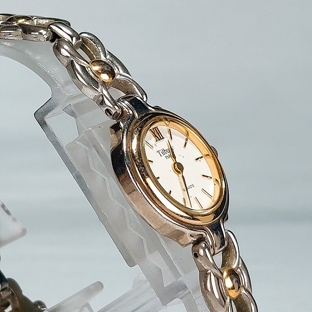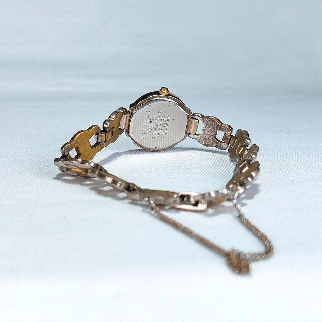 美品 Tilbury ティルベリー 3050159 アナログ クォーツ 腕時計 スモールサイズ ホワイト文字盤 メタルベルト ステンレス 新品電池交換済み