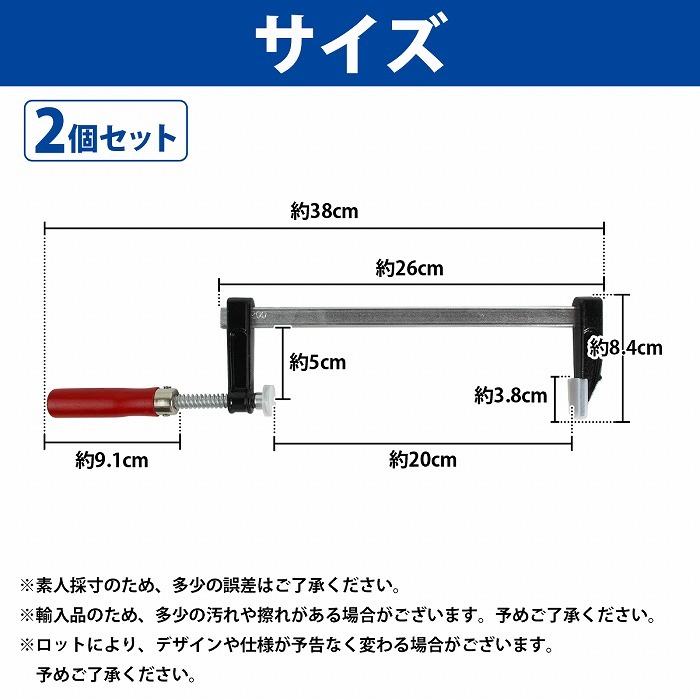 2本セット F型 クランプ 50mm×200mm 最大開口 20cm 木材 木工 工作 溶接 固定 DIY 作業 工具 万力 Fクランプ L型 C型 2個