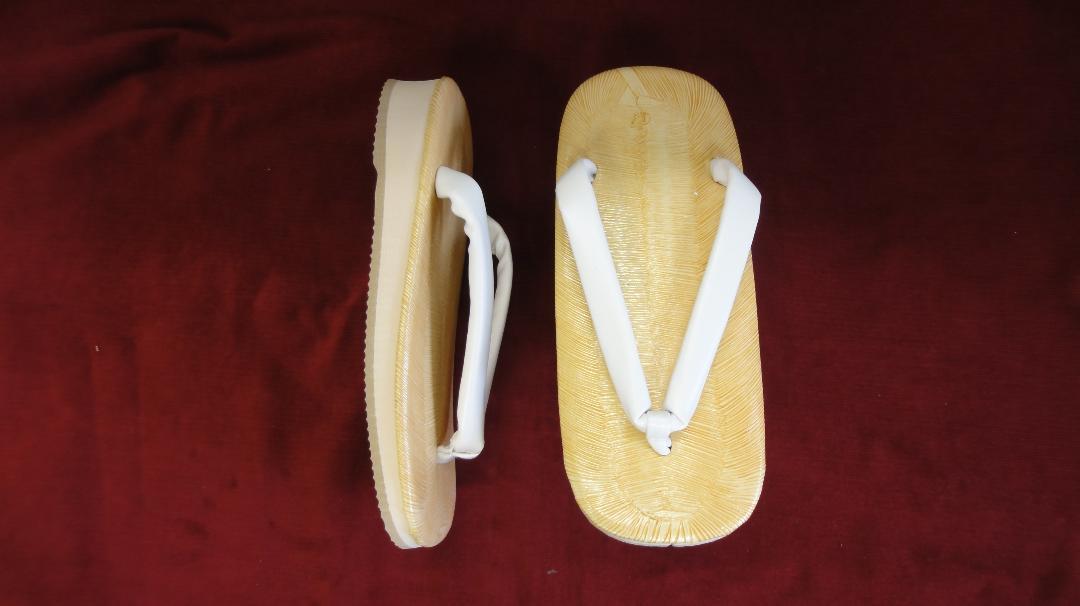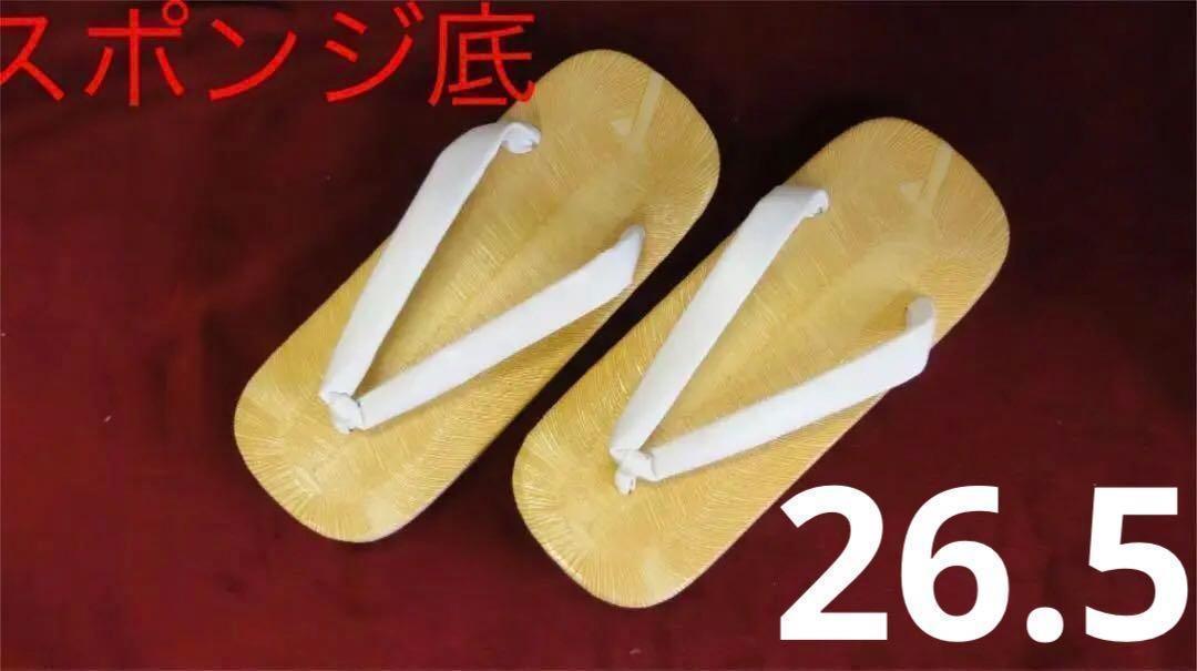 紳士草履 サンド 畳表(ビニール)鼻緒はビニール(デラクール)白です 実寸は 長さ26.5cm 幅10.5cm 厚さ(前1.3cm 後3.0cm) 適応サイズは26.5cm~27.0cm位です 重さは片足158gくらいです。 雪駄は小さめを踵を出して履くのが粋な履き方です。
