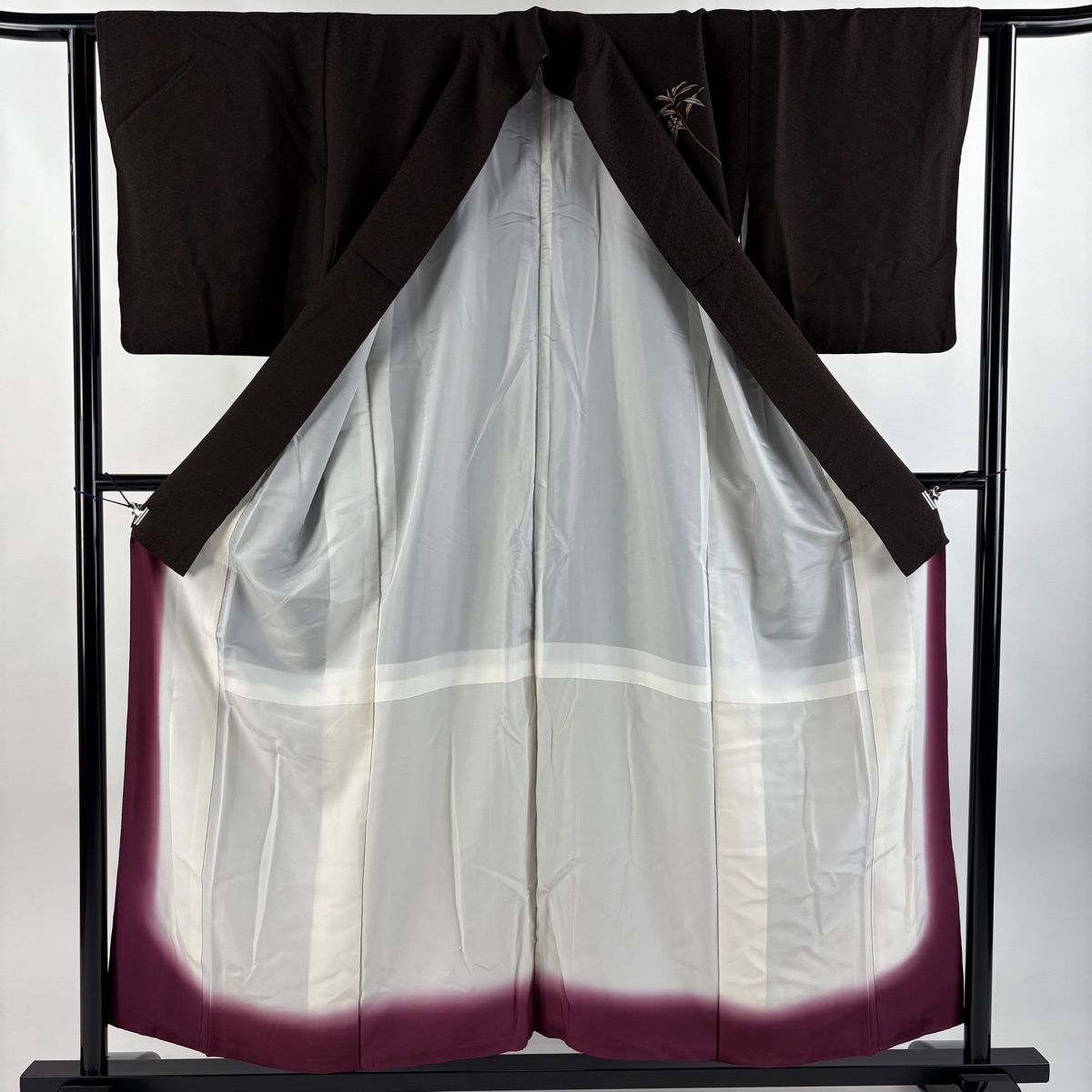 | 付下げ 秀品 落款 葉 実 金銀彩 ぼかし 濃紫 袷 身丈154.5 裄丈62.5 S 正絹 【中古】 |