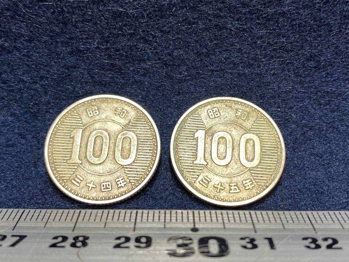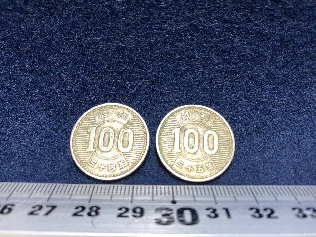 現行貨幣 旧 100円銀貨 硬貨 稲穂 2枚セット 100円銀貨 昭和34年 35年 百円 100YEN ギザ百 銀の分量が多い日本の貨幣 ゴルフ マーカー 珍品