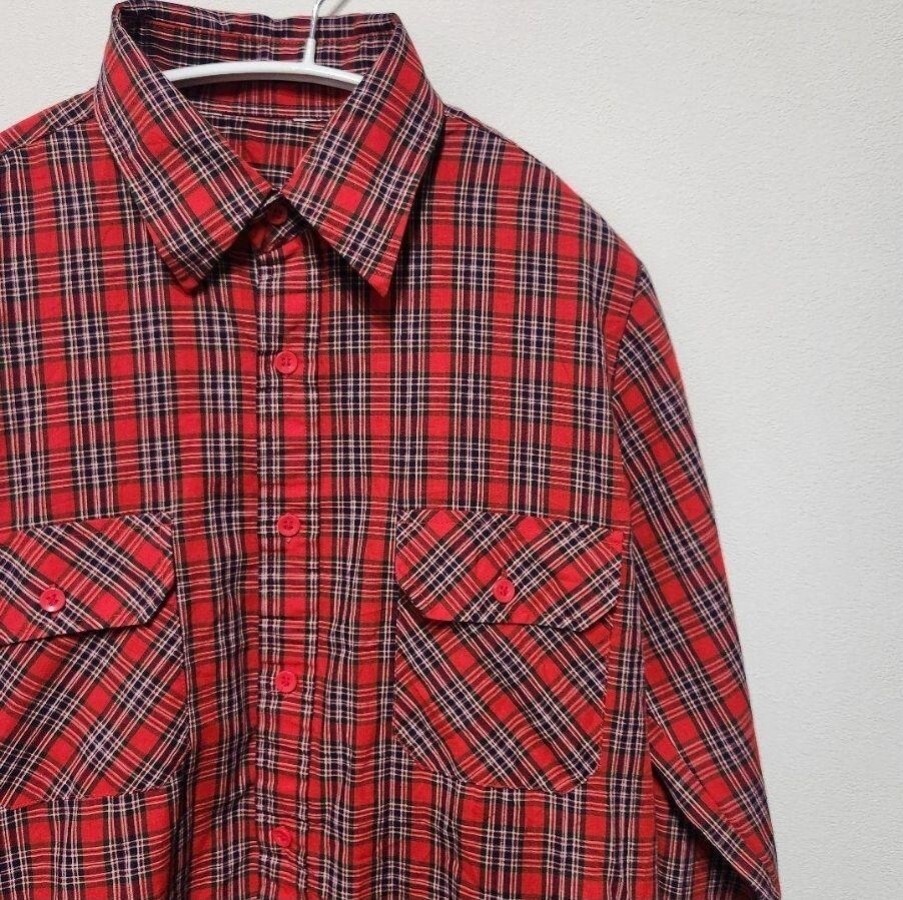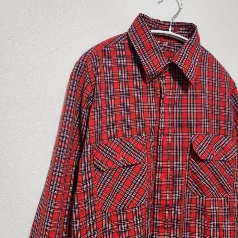 90年代ヴィンテージのノーブランド赤チェックネルシャツです。