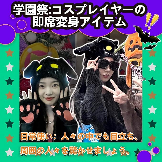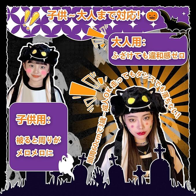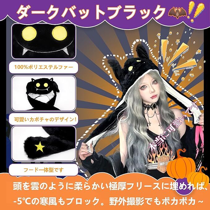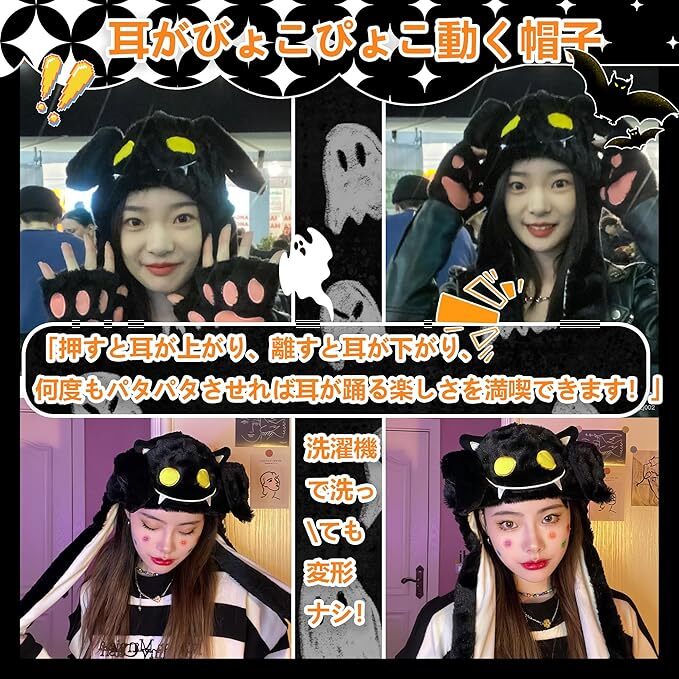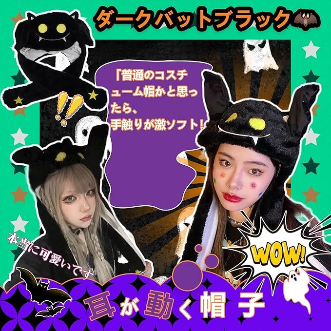 コウモリ柄 ハロウィン 帽子 耳ピコピコ かぼちゃ 着ぐるみ 耳が動く 帽子 ハロウィン 仮装 被り物 コスプレ アニマルキャップ