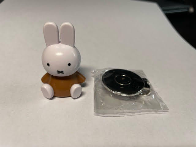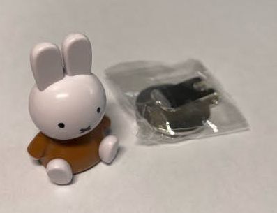 プラスチックのマスコットに磁石に反応するようワッシャーを貼り付けた手作りマーカーです。