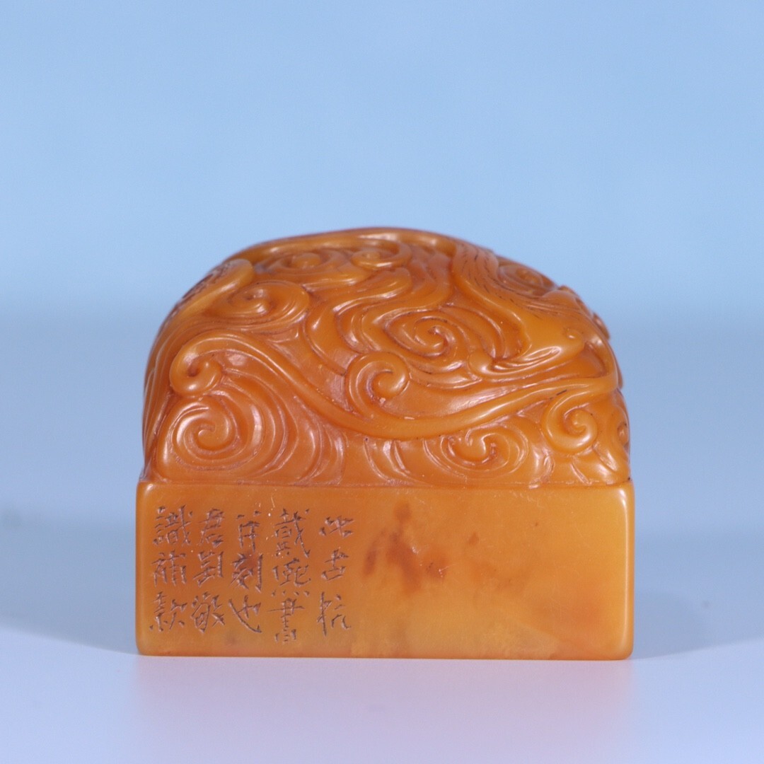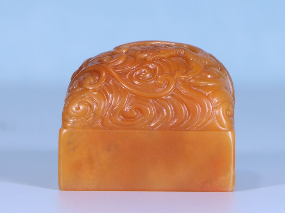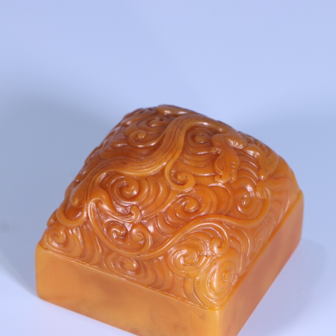 「清 戴熙篆 老寿山石 田黄石彫り 魑龍紋印章」極細工 擺件 古賞物 中国古美術 旧蔵出