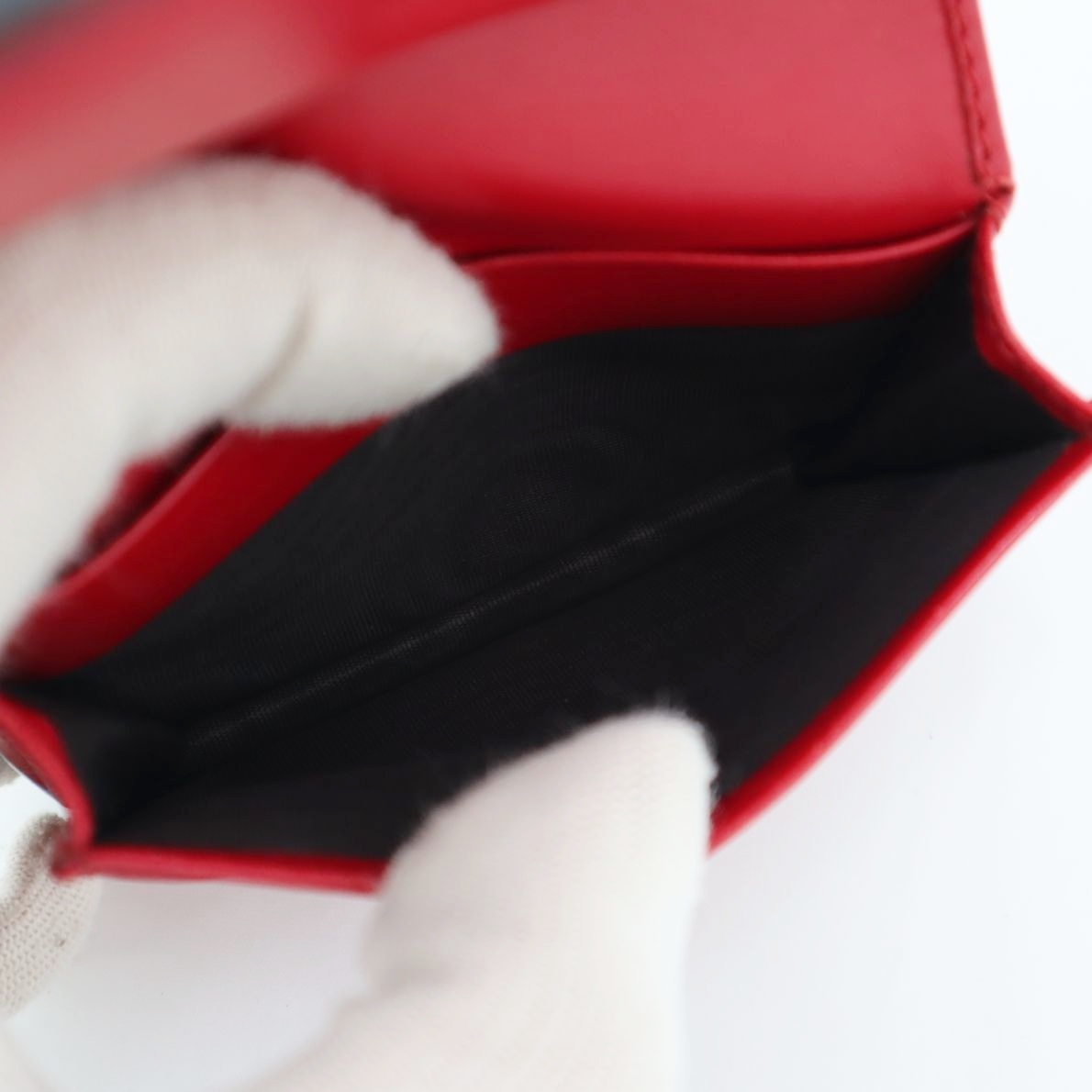 ※若干の誤差はご了承くださいませ。 仕様 :スナップボタン開閉式 外側ポケット :なし 内側ポケット :マチ無カードケース×5 マチ有カードケース×1 札入れ×1 カラー :レッド系 付属品 :保存袋 カード類 素材 :レザー 製造国:made in Italy シリアル番号:493075 商品型番:406924 |