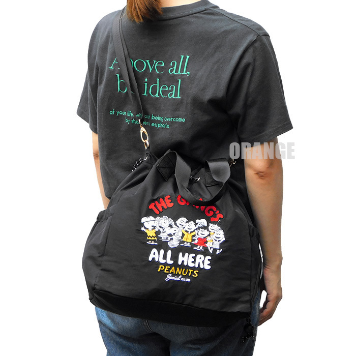 送料無料 スヌーピー 2WAY ナイロン 刺繍 巾着バッグ ドローストリングバッグ ショルダーバッグ レディース 斜めがけバッグ ブラック□