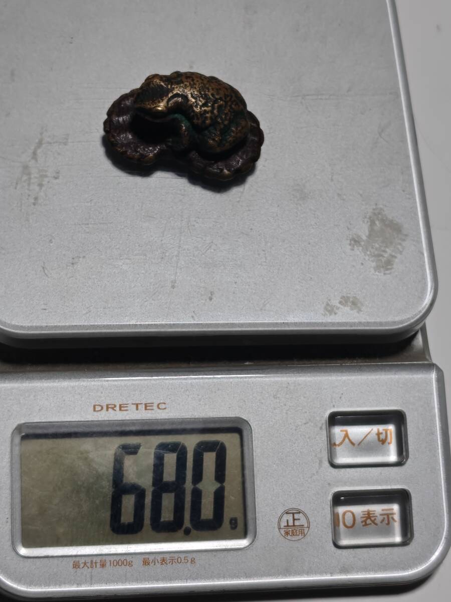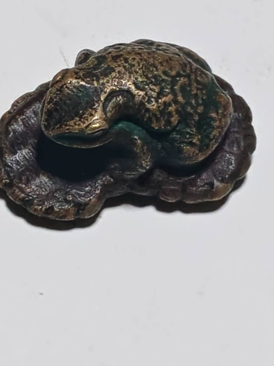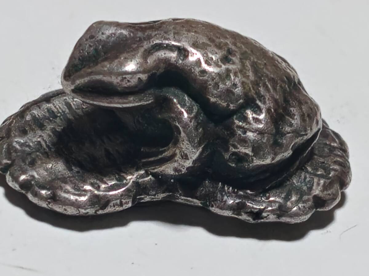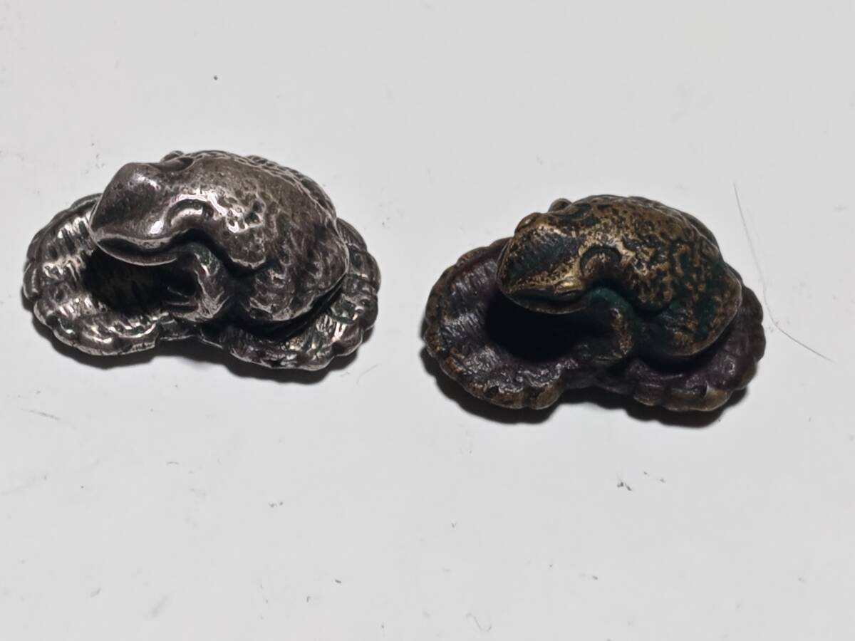 2点共に正直の銘の入っている金属製の根付けで1個は銅製、1個は銀色ですが素材は不明です。