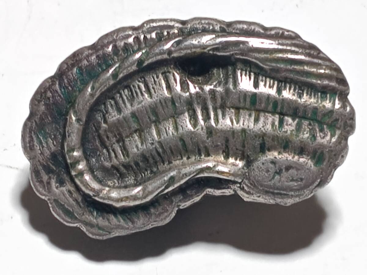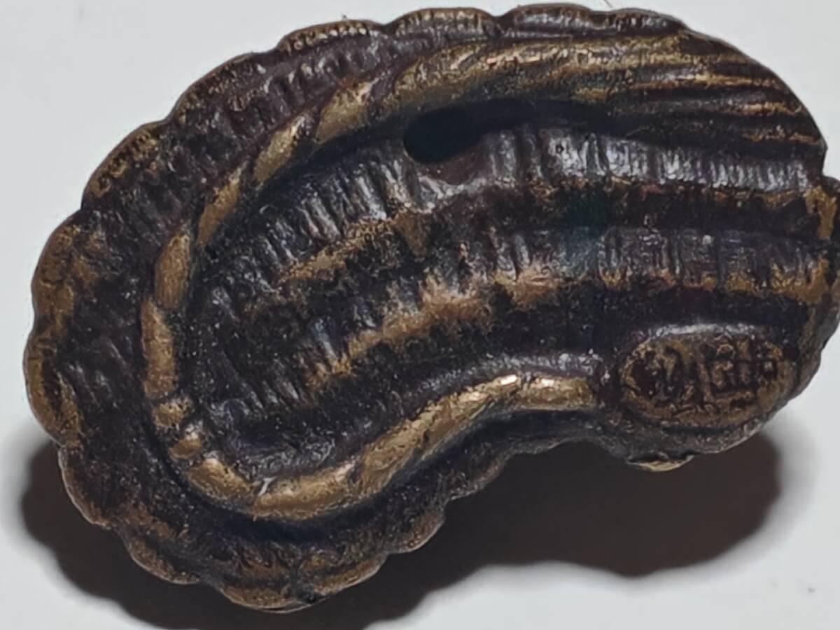 2点共に正直の銘の入っている金属製の根付けで1個は銅製、1個は銀色ですが素材は不明です。